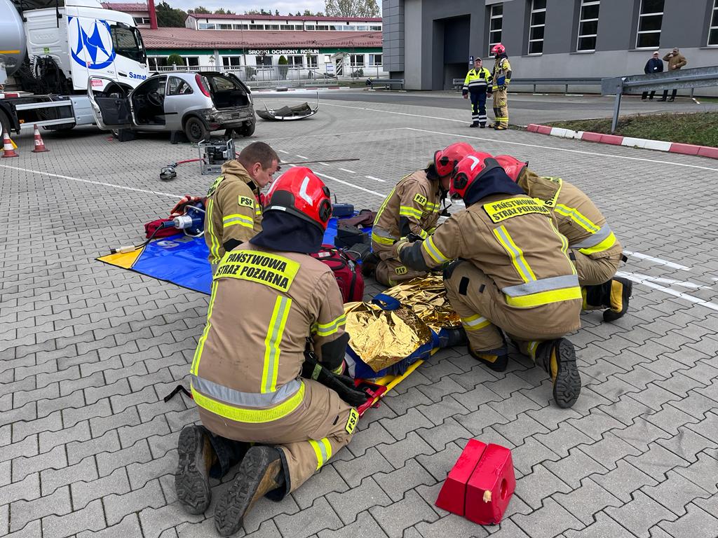 W dniu 17 października jaworzniccy strażacy wzieli udział w ćwiczeniach z ratownictwa technicznego z elementami ratownictwa chemicznego. Zasymulowano zdarzenie, w którym doszło do wypadku samochodu osobowego z samochodem ciężarowym typu cysterna przewożącym olej napędowy. Poszkodowana była jedna osoba - kierujący samochodem osobowym.