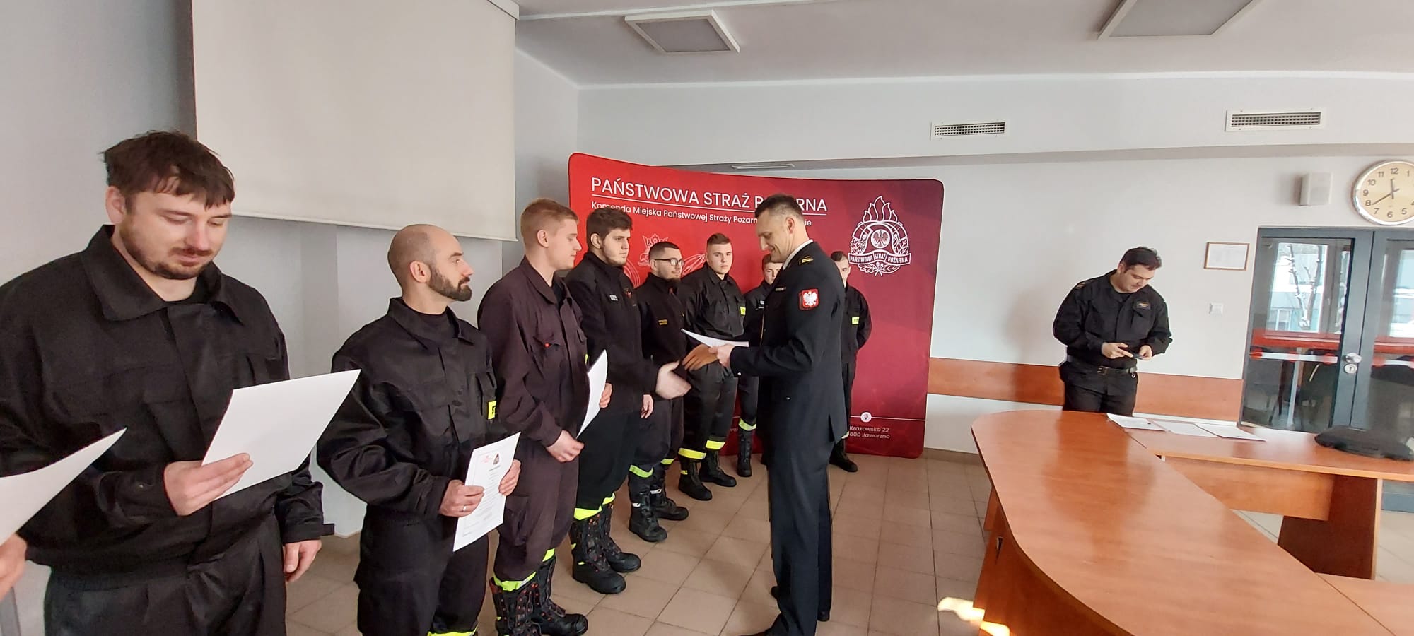 W dniu 18 grudnia br. zakończył się kurs dla kierowców-konserwatorów sprzętu ratowniczego dla druhów OSP z terenu Jaworzna. Po zakończeniu egzaminu mł. bryg. mgr inż. Bartosz Smolarczyk Zastępca Komendanta Miejskiego PSP w Jaworznie pogratulował uczestnikom zdania egzaminu oraz wręczył zaświadczenia. Kurs ukończyło 19 osób.