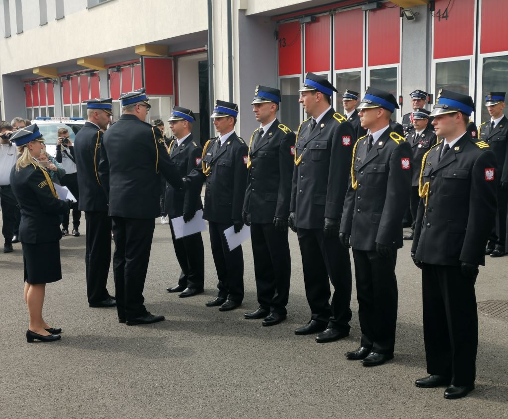 Uroczystość rozpoczęła się od złożenia meldunku Zastępcy Śląskiego Komendanta Wojewódzkiego Państwowej Straży Pożarnej starszemu brygadierowi Rafałowi Świerczkowi przez Dowódcę Uroczystości starszego kapitana Radosława Pakułę.