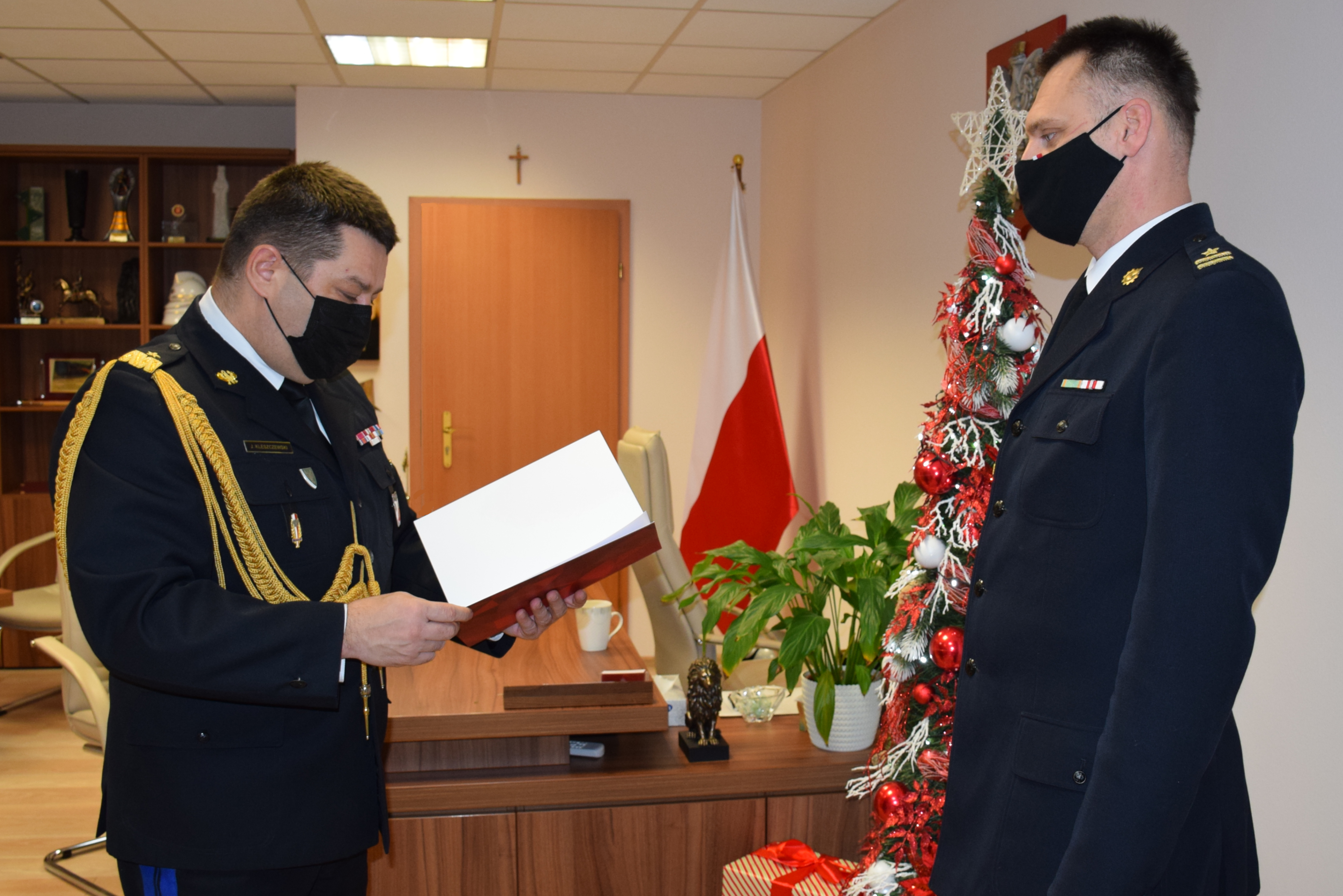 Mł. bryg. Bartosz Smolarczyk za dotychczasowe osiągnięcia w służbie został odznaczony Medalem za Ofiarność i Odwagę oraz Brązowym Medalem „Za zasługi dla pożarnictwa”.