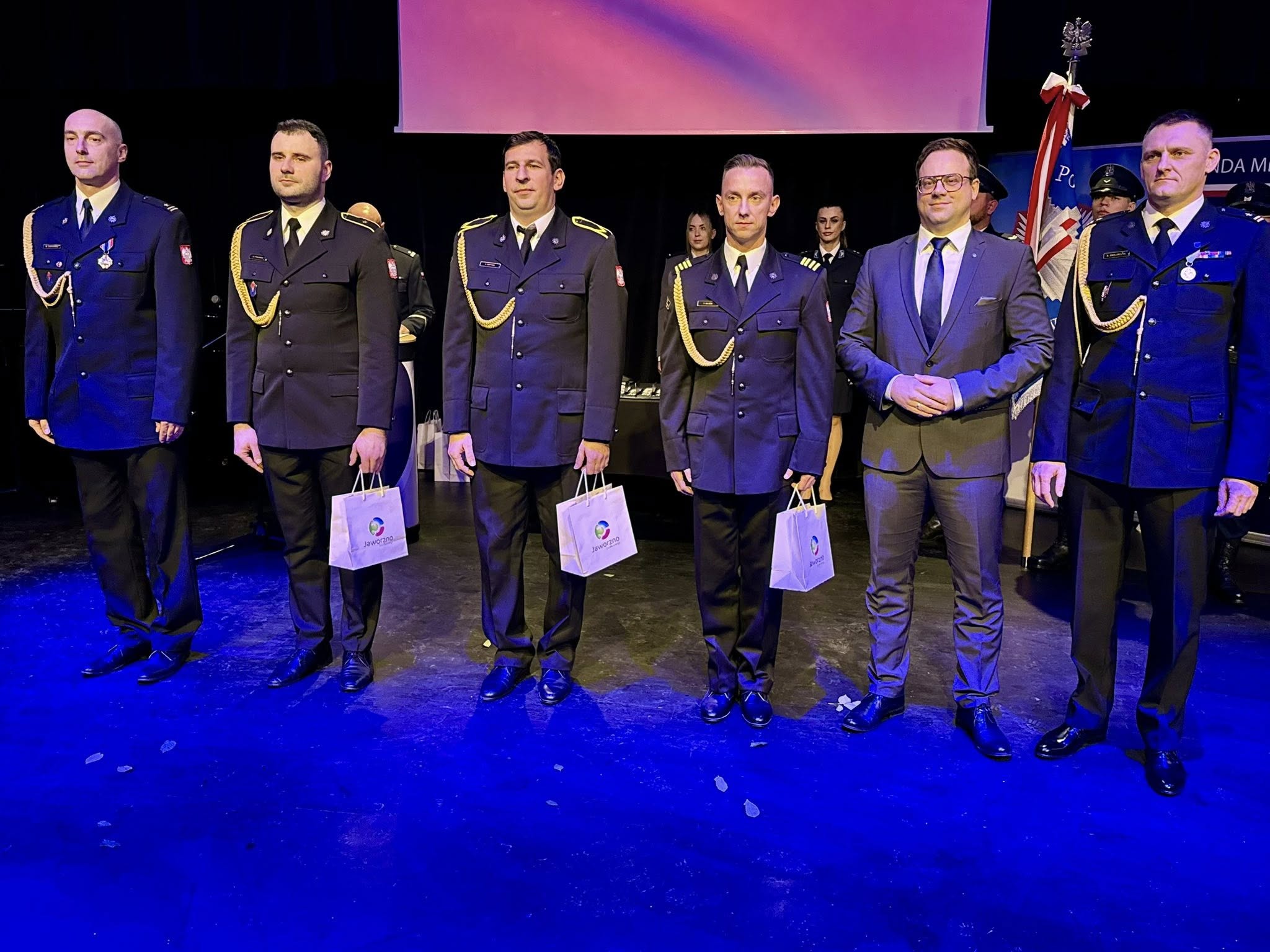 W poniedziałek, 24 listopada, w ATElier Kultury odbyła się uroczysta zbiórka z okazji Narodowego Święta Niepodległości. Podczas wydarzenia uhonorowano m.in. pracowników cywilnych Policji, strażaków Komenda Miejska Państwowej Straży Pożarnej w Jaworznie, funkcjonariuszy Straż Miejska w Jaworznie oraz pracowników Wydziału Zarządzania Kryzysowego Urzędu Miejskiego.