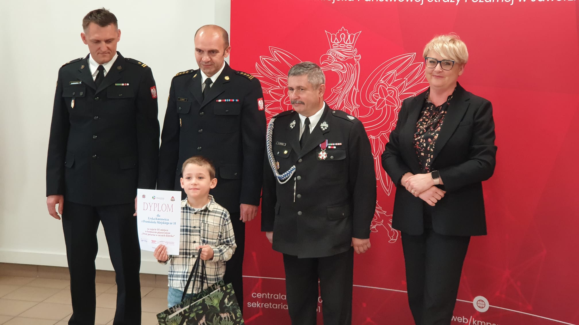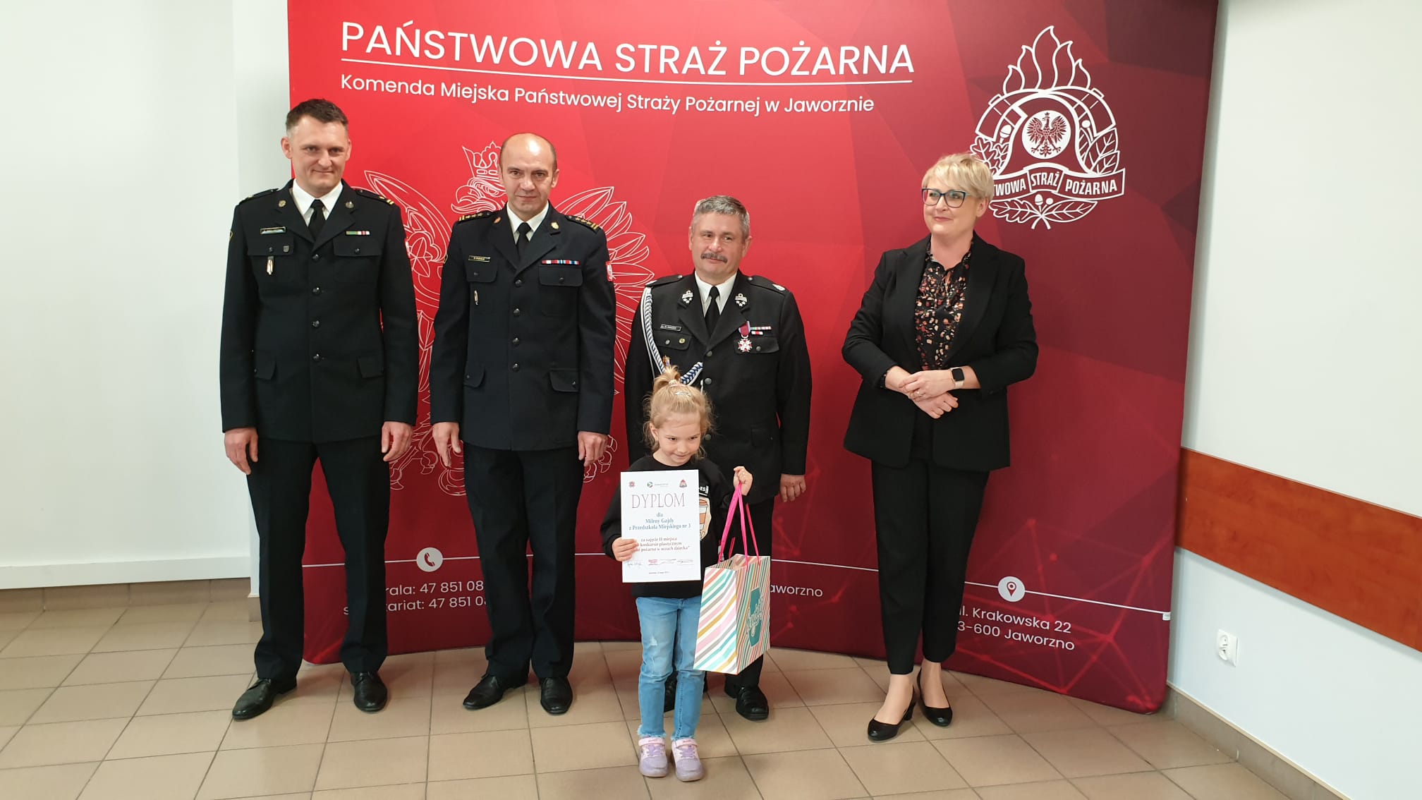 W środę, 24 maja br. w Komendzie Państwowej Straży Pożarnej w Jaworznie odbyło się uroczyste wręczenie nagród w konkursie plastycznym "Straż pożarna w oczach dziecka". Konkurs organizowany był po raz jedenasty przez OSP Ciężkowice w Jaworznie oraz Przedszkole Miejskie nr 4 w Jaworznie pod honorowym patronatem Komendanta Miejskiego Państwowej Straży Pożarnej w Jaworznie. Laureatami zostało siedmioro dzieci z przedszkoli miejskich z terenu miasta Jaworzna. Konkurs był finansowany z budżetu Miasta Jaworzna w ramach realizacji zadania publicznego pn. "Beznudna Remiza 2023".