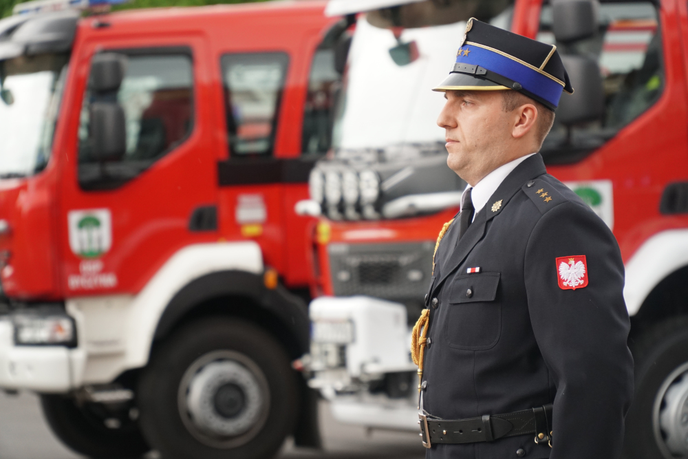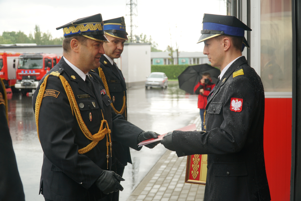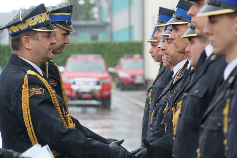 Uroczystość rozpoczęła się od złożenia meldunku Śląskiemu Komendantowi Wojewódzkiemu Państwowej Straży Pożarnej nadbrygadierowi Jackowi Kleszczewskiemu przez Dowódcę Uroczystości kapitana Radosława Pakułę.