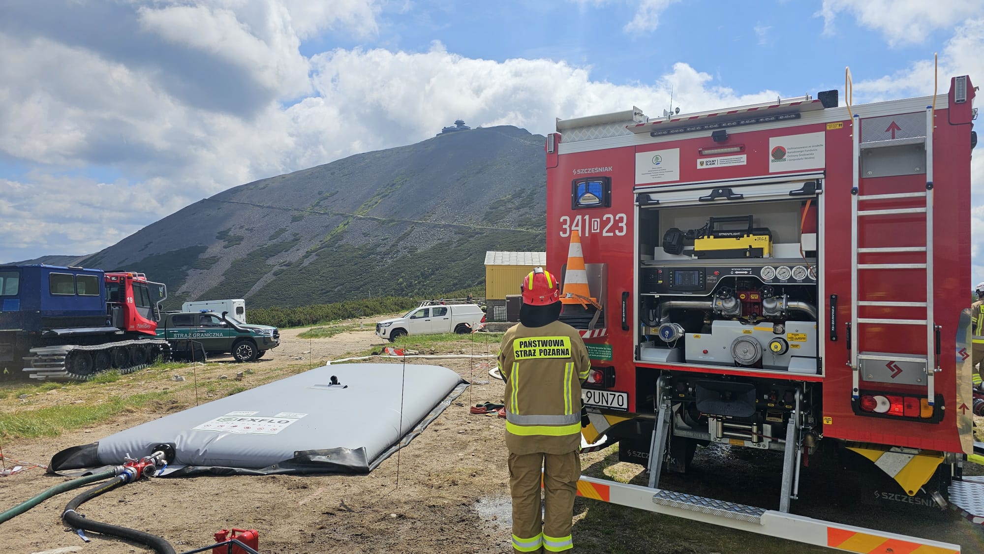 W ćwiczeniach sprawdzono sprzęt pozyskany przez Karkonoski Park Narodowy ze środków Narodowego Funduszu Ochrony Środowiska w ramach projektu „Modernizacja i rozbudowa systemu przeciwpożarowego w Karkonoskim Parku Narodowym”