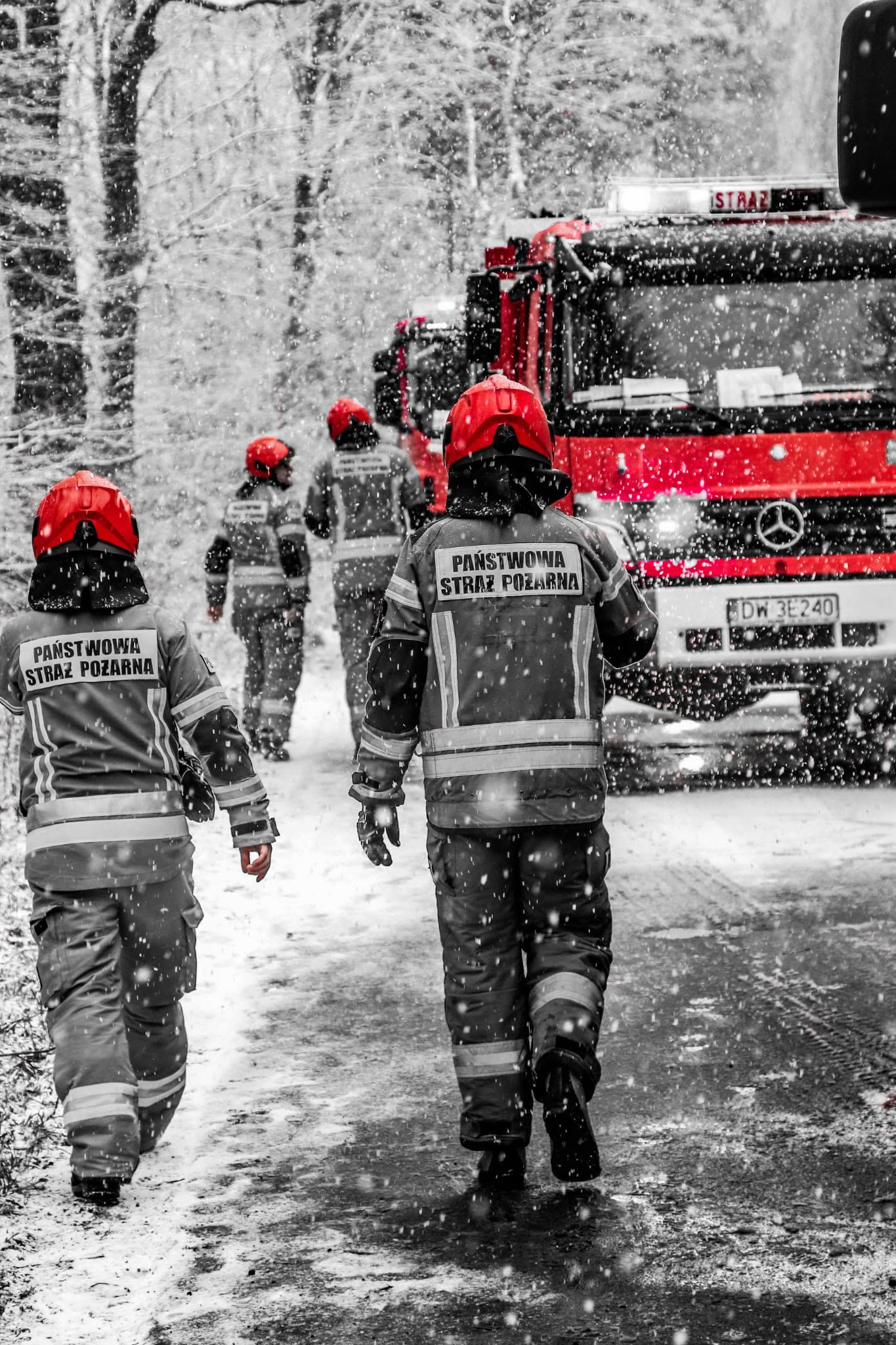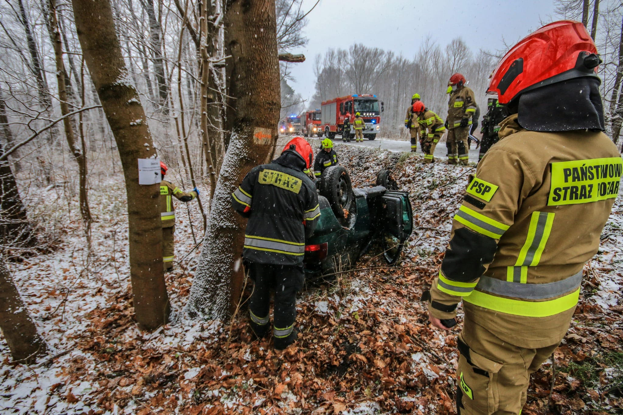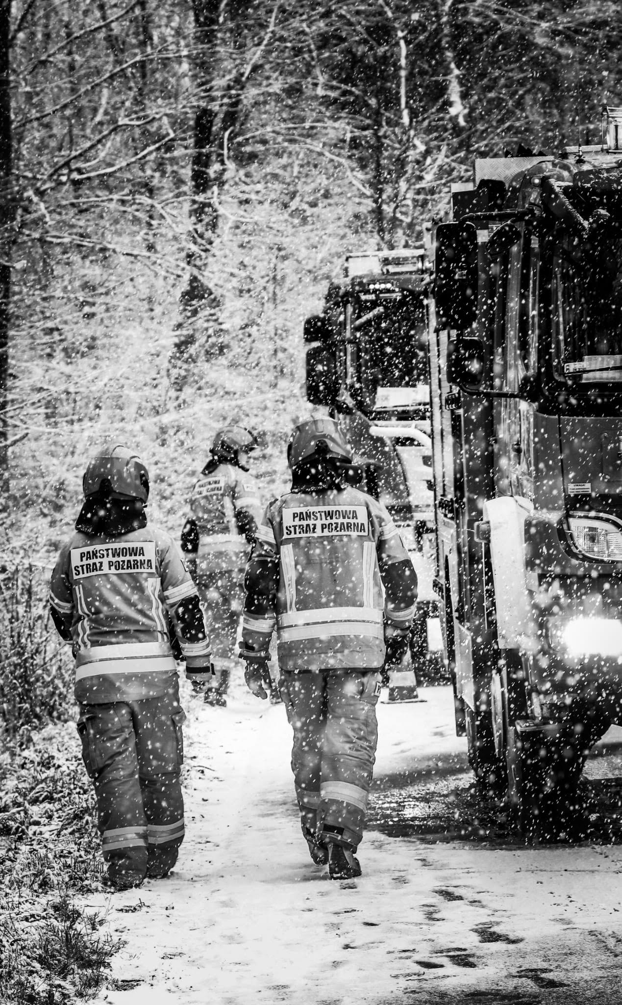 W związku z bardzo ciężkimi warunkami atmosferycznymi dojazd do zdarzenia był wydłużony.