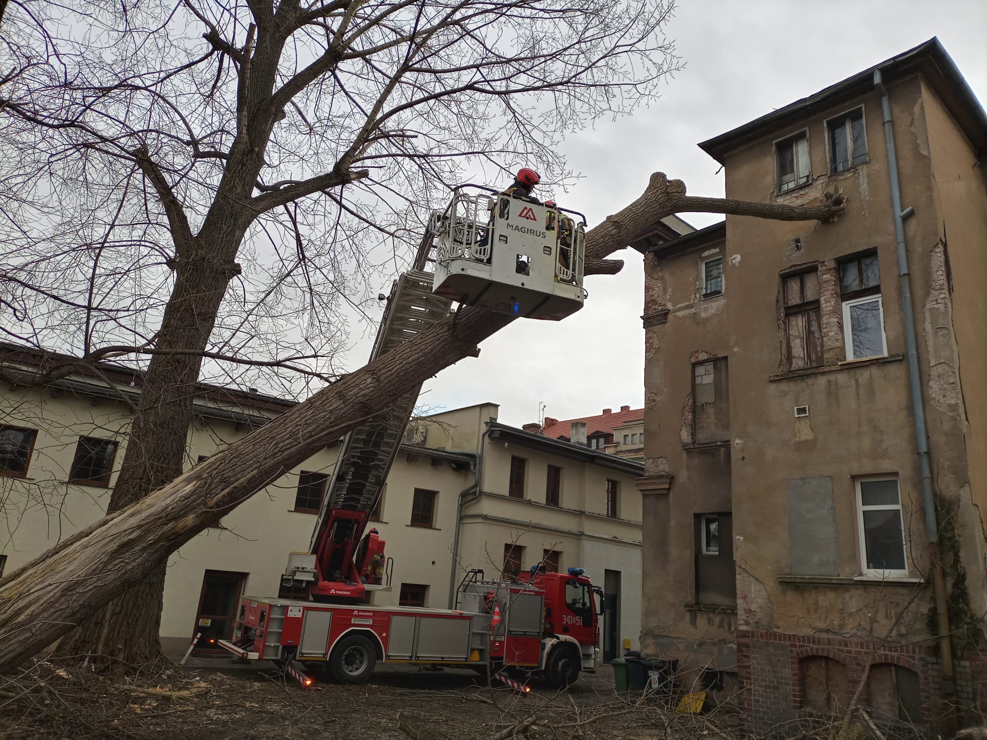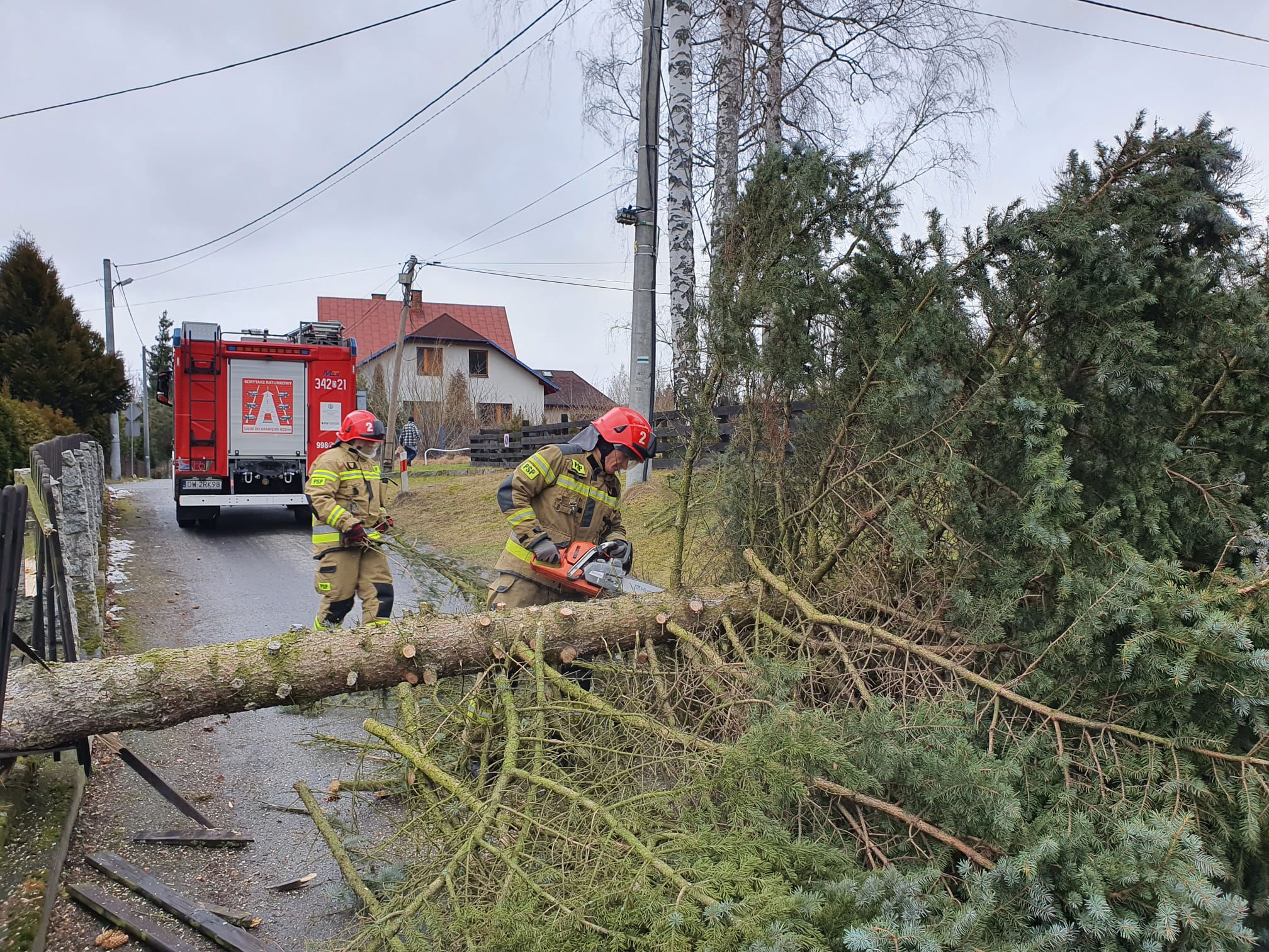 Działania jednostek straży pożarnej polegają w głównej mierze na usuwaniu powalonych drzew bezpośrednio zagrażających życiu i zdrowiu.