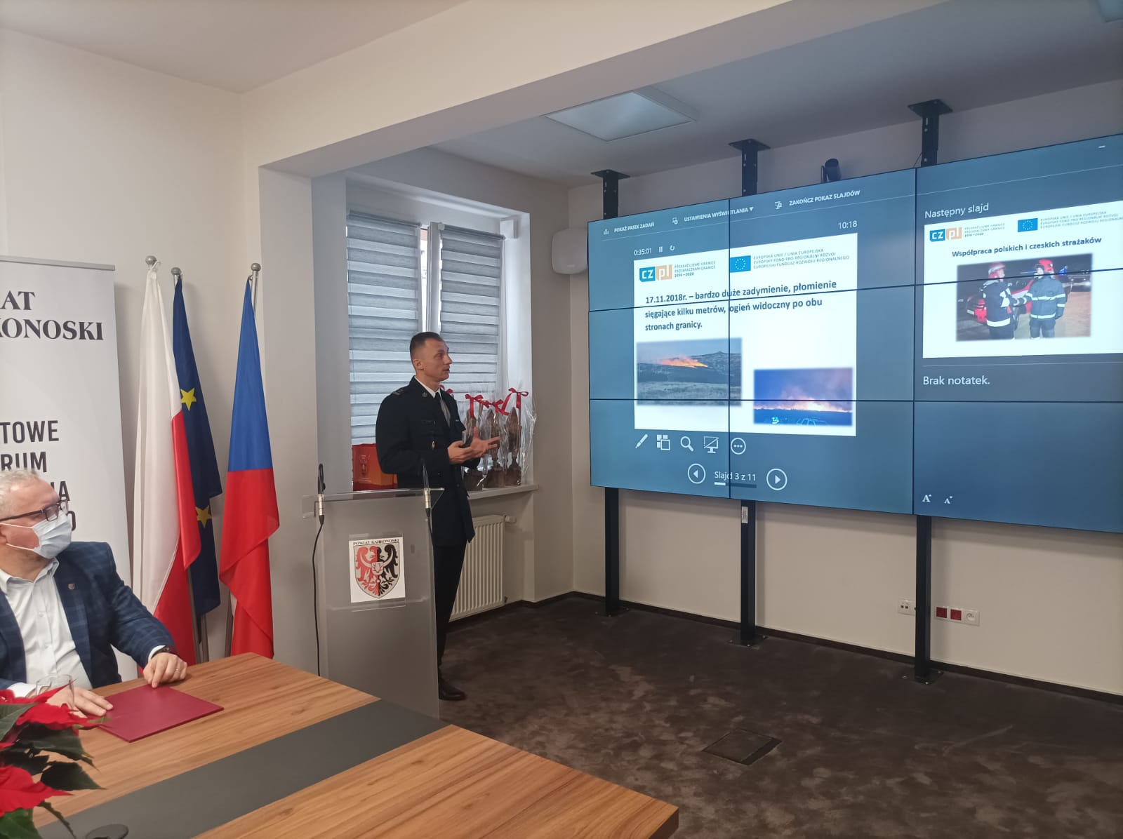 10 grudnia 2021 roku w Sali Transgranicznego Centrum Zarządzania Kryzysowego odbyła się konferencja podsumowująca przedsięwzięcia zrealizowane w latach 2018-2021 w ramach projektu pn. „Wzmocnienie wspólnego pogranicza w rejonie Kotliny Jeleniogórskiej, Gór Izerskich i Karkonoszy"