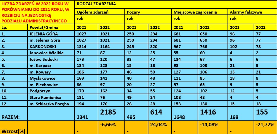 Podsumowanie statystyczne 2022 roku w Komendzie Miejskiej Państwowej Straży Pożarnej w Jeleniej Górze