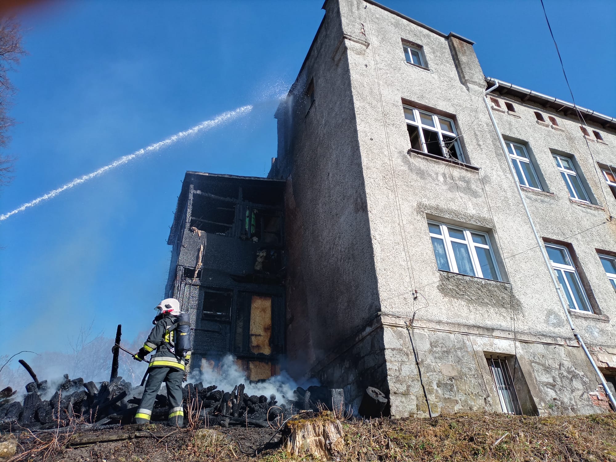 28 marca 2022 roku do Stanowiska Kierowania Komendanta Miejskiego PSP w Jeleniej Górze wpłynęło zgłoszenie o pożarze budynku mieszkalnego wielorodzinnego w Janowicach Wielkich.