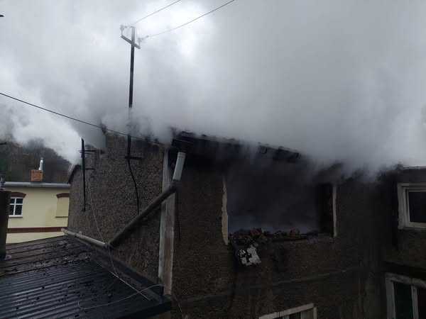 Pożar budynku mieszkalnego wielorodzinnego w mieście Jelenia Góra