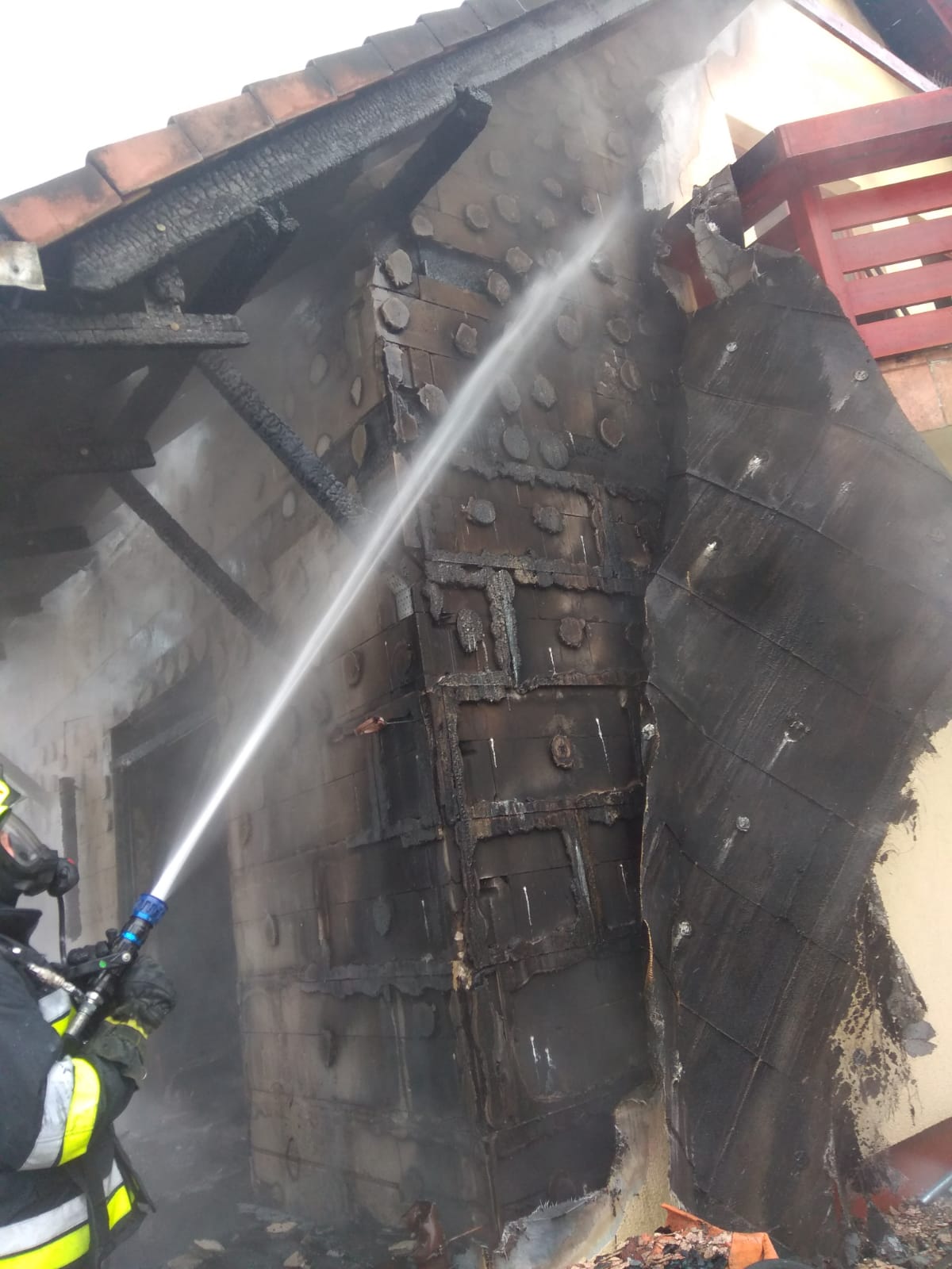 Po ugaszeniu pożaru przystąpiono do prac rozbiórkowych, uszkodzonego w wyniku oddziaływania termicznego, fragmentu pokrycia dachu. Działania zakończono o godz. 11:05.