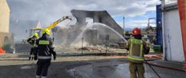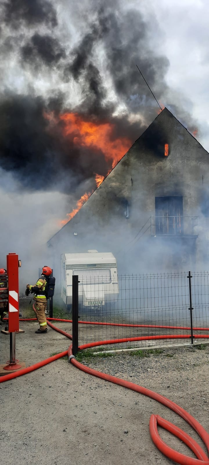 Działania utrudniały wysoki stopień rozwoju pożaru, w momencie przyjazdu pierwszych zastępów, konstrukcja obiektu i silny, porywisty wiatr