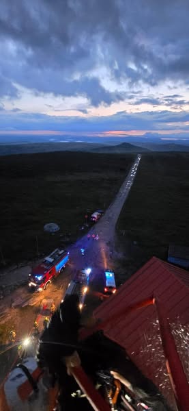 Na miejscu działały również jednostki GOPR Karkonosze oraz przedstawiciele Karkonoskiego Parku Narodowego, wspierając działania logistyczne i zabezpieczając teren górski wokół obiektu.
