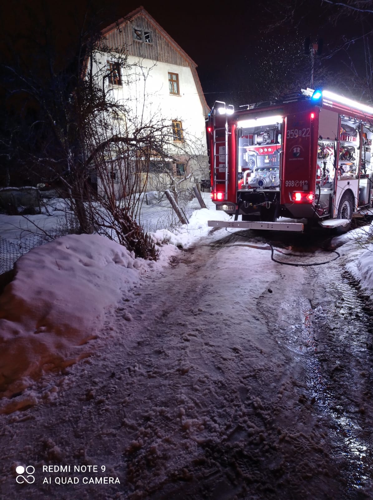 24.01.2021r. o godz. 16.20 dyżurny stanowiska kierowania KM PSP w Jeleniej Górze otrzymał zgłoszenie o pożarze mieszkania na parterze w budynku mieszkalnym wielorodzinnym w Szklarskiej Porębie przy ul. Osiedle Grottgera. Jako pierwsi na miejsce dotarli strażacy OSP KSRG w Szklarskie Porębie. Z otworów okiennych i drzwiowych budynku wydobywał się dym. Mieszkańcy opuścili obiekt przed przybyciem strażaków. Pożarnicy przystąpili do gaszenia pożaru z jednoczesnym przeszukiwaniem budynku pod kątem osób, które mogły w nim zostać. Nie odnaleziono nikogo. Lokatorowi mieszkania, w którym powstał pożar udzielona została kwalifikowana pierwsza pomoc. Następnie poszkodowany przekazany został zespołowi pogotowia ratunkowego. Akcję zakończono po niespełna 2 godzinach. Żywioł zniszczył mieszkanie na parterze wraz z jego wyposażeniem. Nie ustalono przyczyny powstania pożaru. W działaniach uczestniczyło 6 samochodów pożarniczych i 28 strażaków. Strażacy współpracowali z pogotowiem ratunkowym i energetycznym oraz policją.
