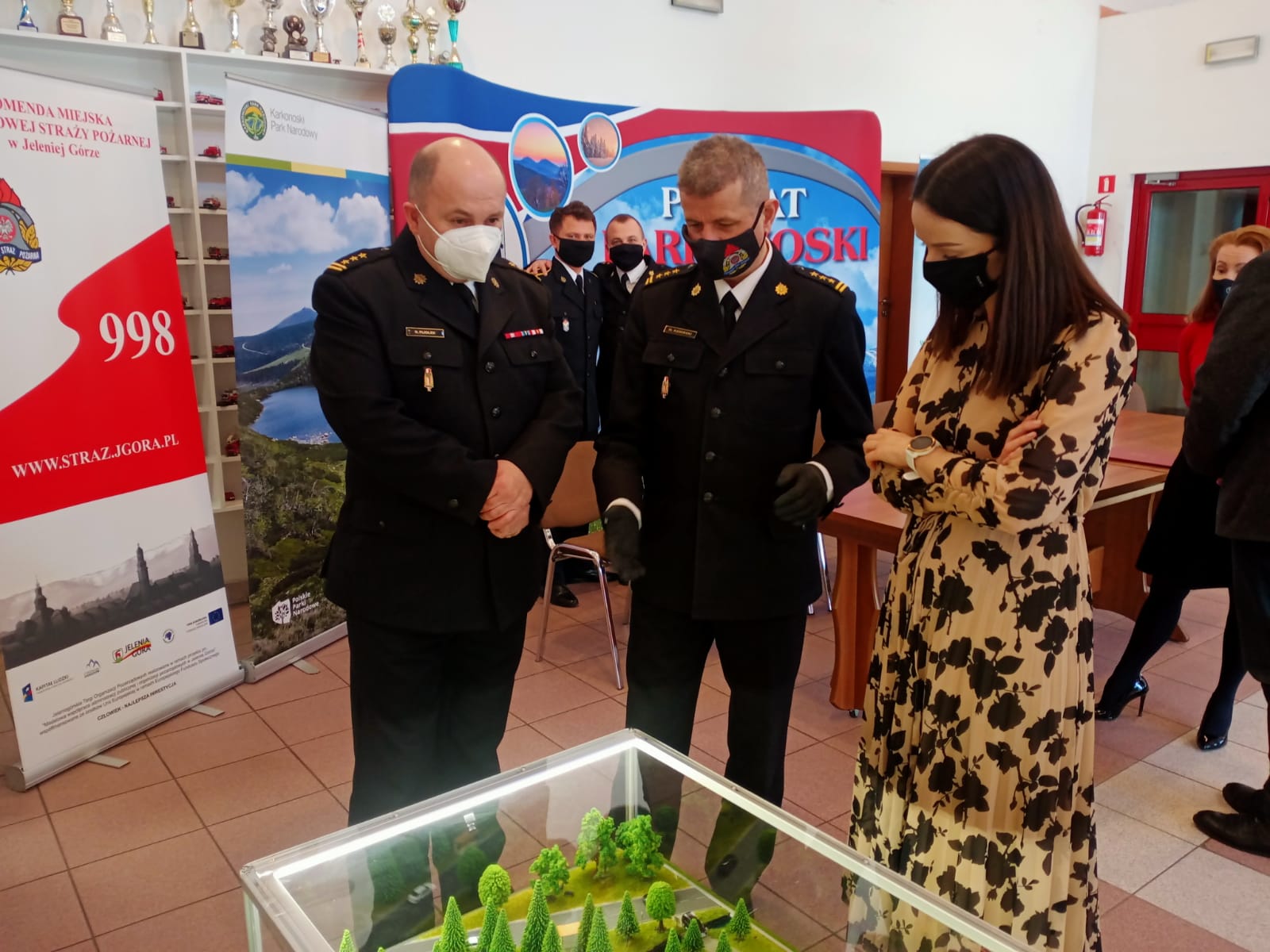 W dniu 10 marca 2021 roku w Jednostce Ratowniczo-Gaśniczej nr 1 Komendy Miejskiej PSP w Jeleniej Górze odbyła się inauguracja realizacji zadania „Wsparcie edukacji ekologicznej i przeciwpożarowej dzieci, młodzieży i dorosłych mieszkańców powiatu jeleniogórskiego poprzez zakup mobilnych symulatorów zagrożeń pożarowych”.