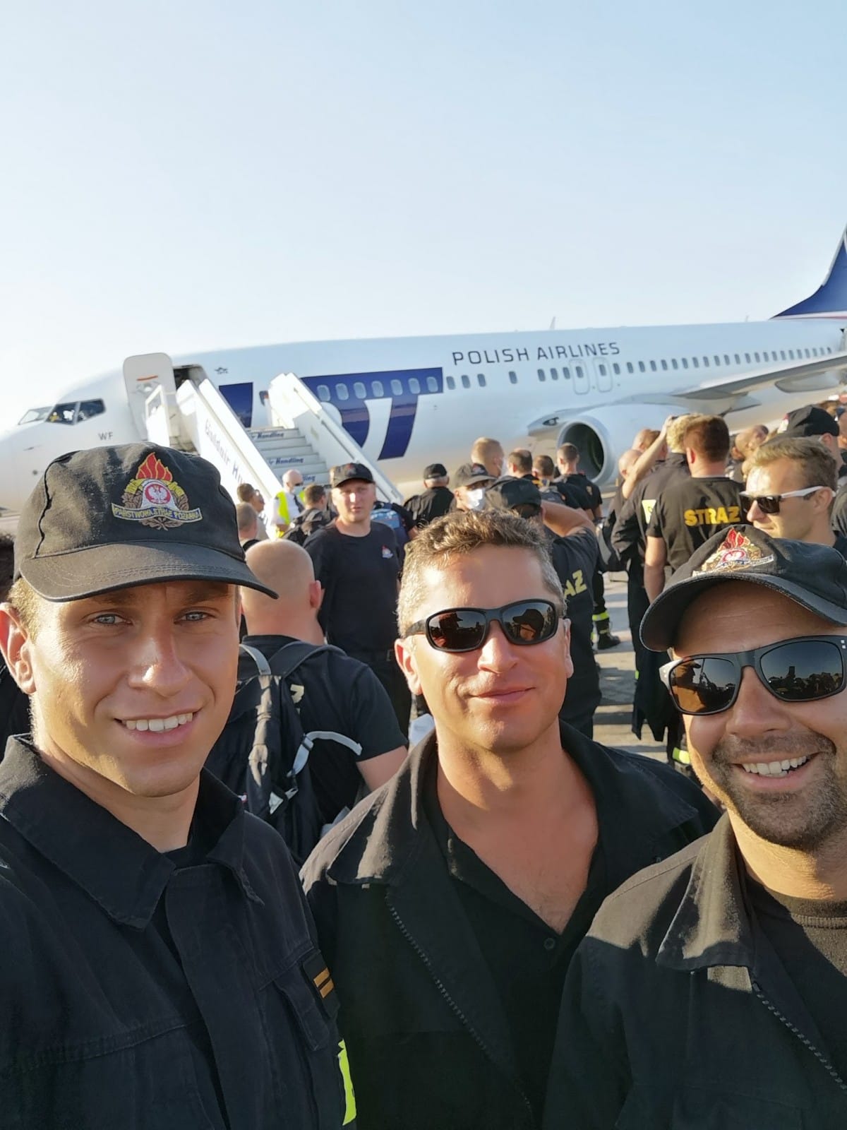 Grupa strażaków 1. zmiany GFFFV Poland wylądowała ok. godz. 21.00 na lotnisku w Warszawie. Załogę przywitali Minister Spraw Wewnętrznych i Administracji Mariusz Kamiński wraz z Wiceministrem Maciejem Wąsikiem oraz Komendant Główny PSP nadbryg. Andrzej Bartkowiak wraz z Zastępcami nadbryg. Adamem Koniecznym i nadbryg. Krzysztofem Hejdukiem.