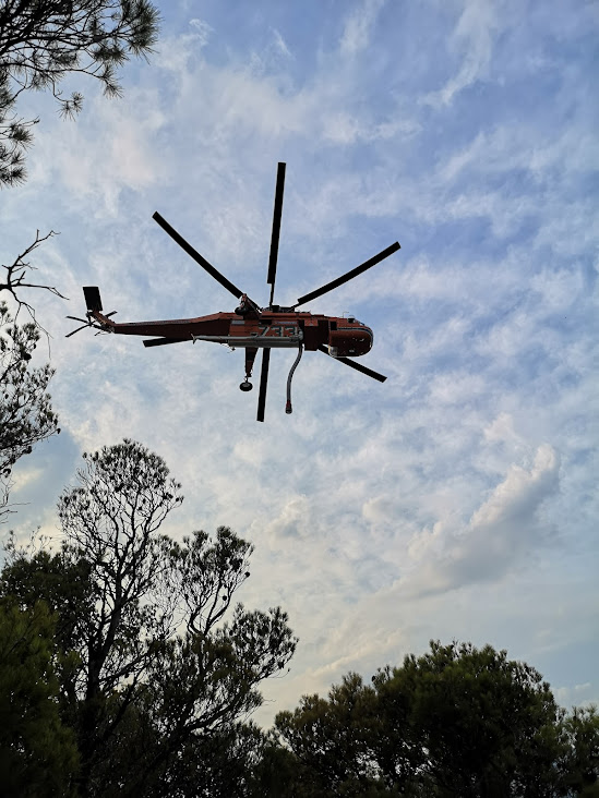 W m. Ellinika tj. obszarze działania plutonów GFFFV z woj. dolnośląskiego akcję prowadzono na wzgórzach przy miejscowości. Główne zadania polegały na likwidacji zarzewi ognia oraz pożarów rozniecanych przez wiatr, w tym lokalnie pożarów całkowitych drzewostanu. Działania realizowane były we współpracy ze strażakami z Grecji oraz Ukrainy.
