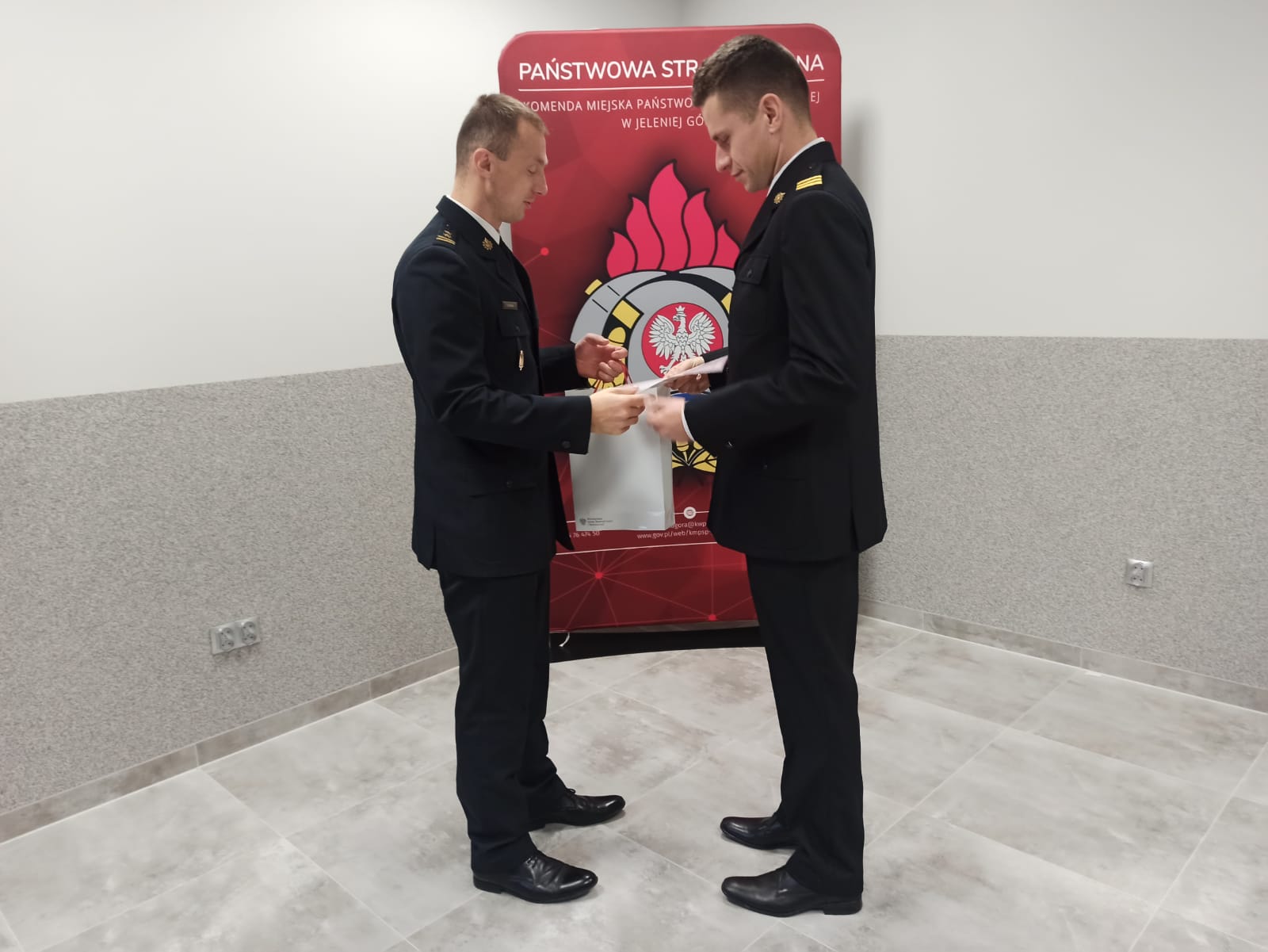 Spotkanie było okazją do przekazania pamiątkowych tabliczek ufundowanych przez Ministra Spraw Wewnętrznych i Administracji oraz do wręczenia awansów w stopniach służbowych.