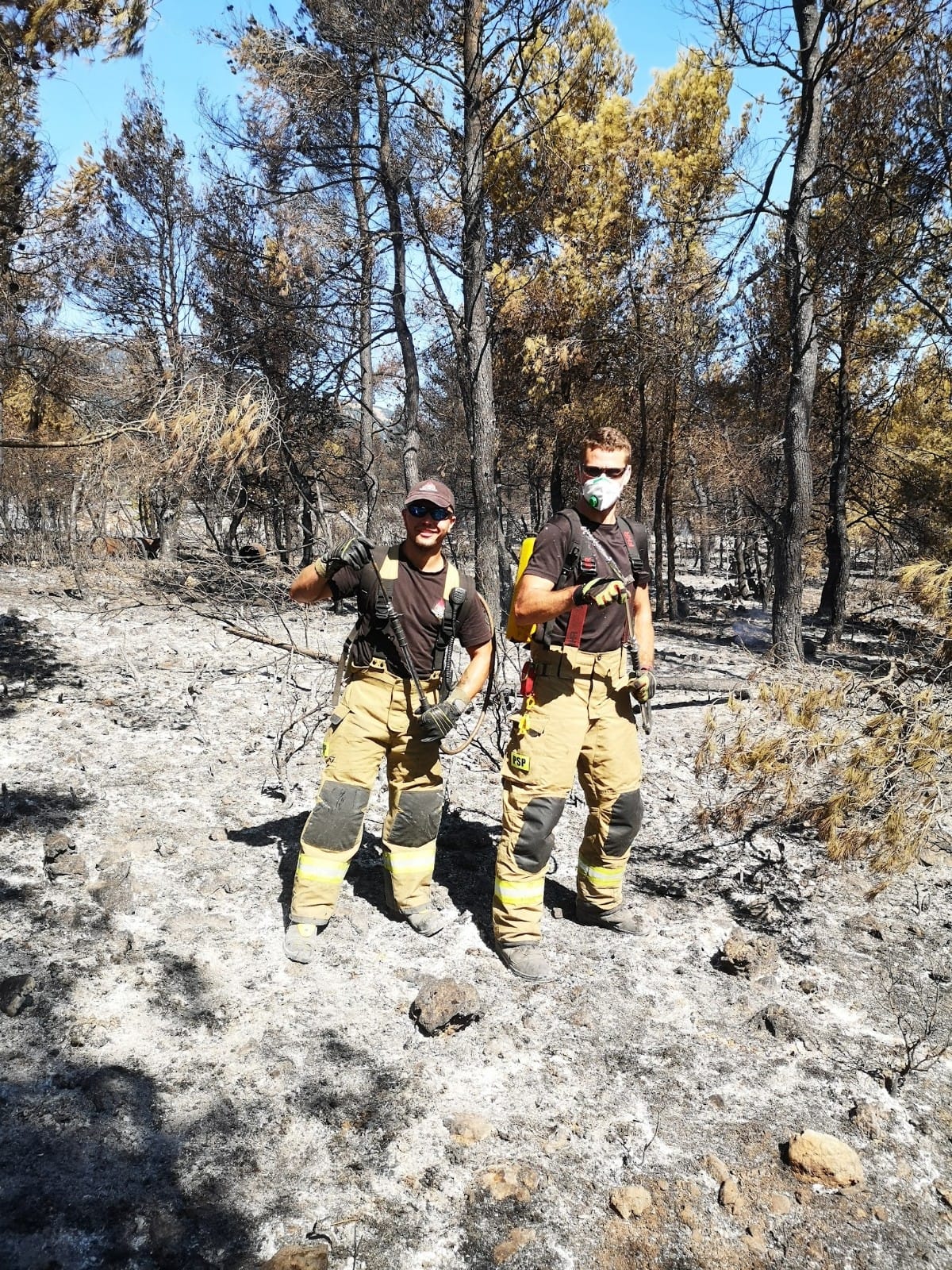 Baza operacji: baza polskich strażaków znajduje się w siedzibie byłej szkoły pożarniczej. W oparciu o dostępną infrastrukturę strażacy zorganizowali tam zaplecze socjalne, sanitarne oraz miejsce stacjonowania i tankowania pojazdów. W celu zabezpieczenia bazy przed pożarem z pobliskiego lasu, postawiono dodatkowe zbiorniki na wodę do celów gaśniczych. Ponadto, wykonano przycinkę lasu i z pomocą buldożerów wykonano pas oddzielający, który strażacy na bieżąco poszerzają i zabezpieczają.