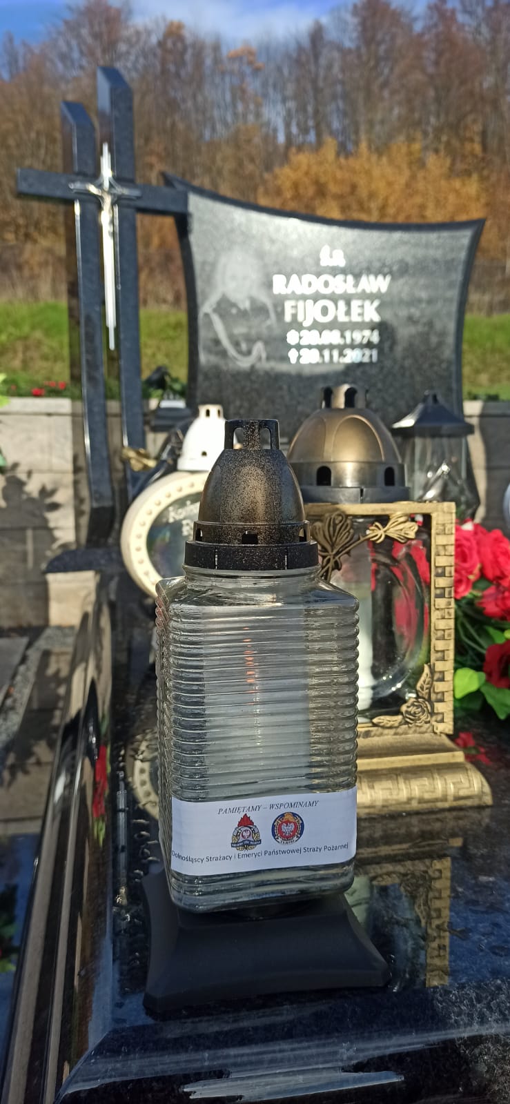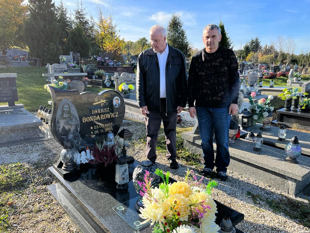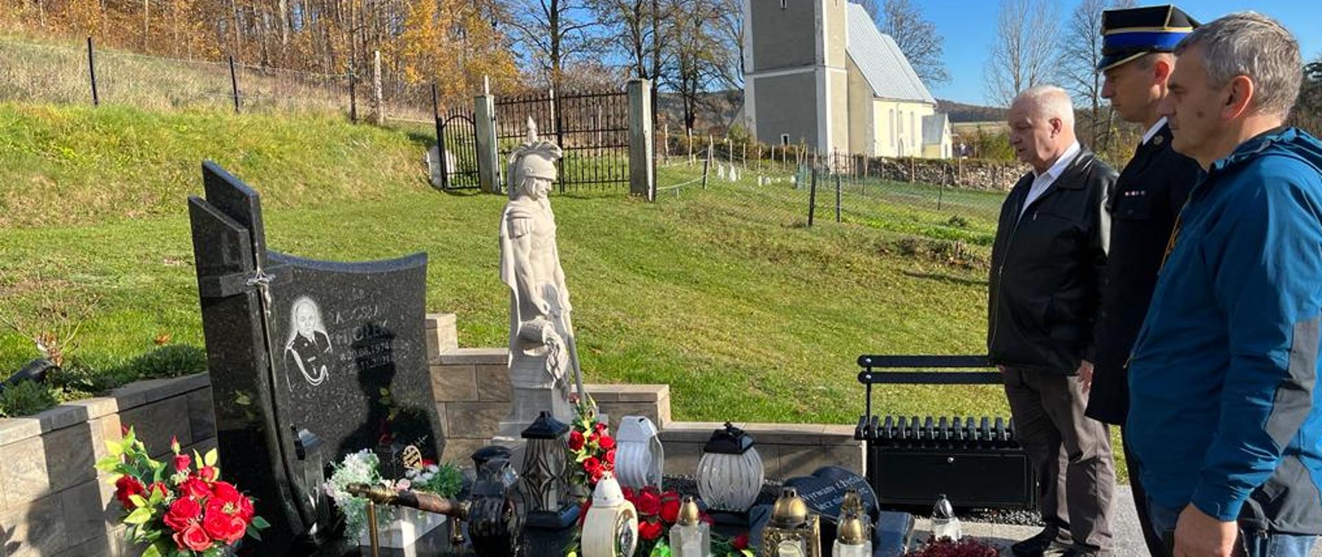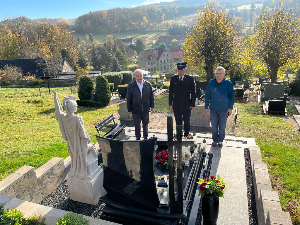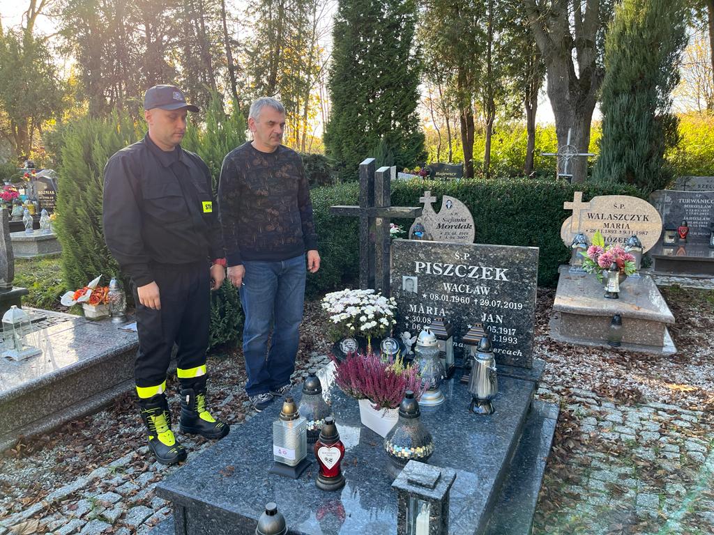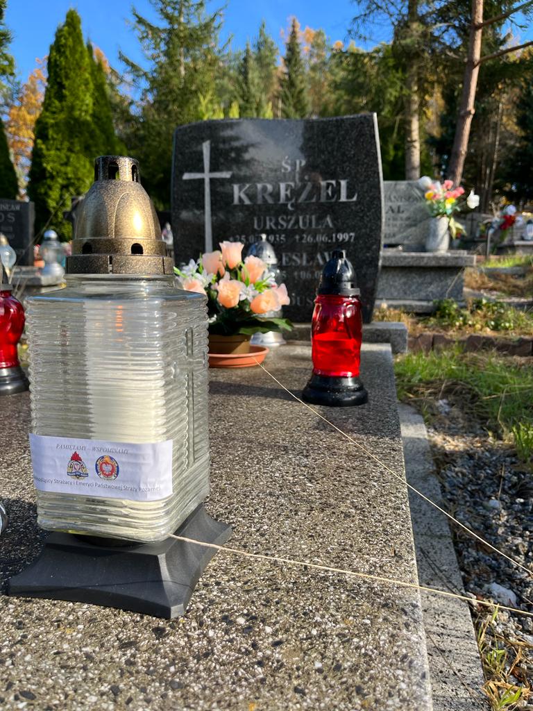odwiedzili groby zmarłych koleżanek i kolegów strażaków pochowanych na cmentarzach powiatu karkonoskiego i innych. Na odwiedzonych grobach w zadumie i ciszy zapalono znicze z napisem „ Pamiętamy i Wspominamy” z logiem Państwowej Straży Pożarnej i Związku Emerytów i Rencistów Pożarnictwa RP. W pierwszej kolejności odwiedzili grób zmarłego nagle rok temu st. bryg. Radosława Fijołka na cmentarzu w Mysłowie.