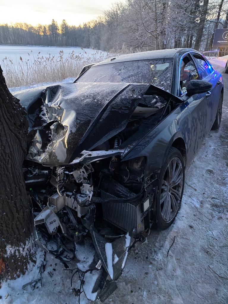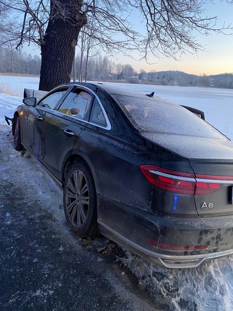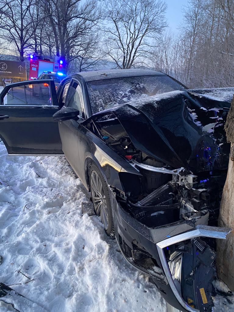 15.02.2021r. o godz. 6:20 rano dyżurny stanowiska kierowania KM PSP w Jeleniej Górze otrzymał zgłoszenie o samochodzie marki Audi, który uderzył w drzewo. Na miejsce zdarzenia zostały zadysponowane dwa zastępy Państwowej Straży Pożarnej GBA 341-21, SRt 341-43 oraz jednostka OSP Jelenia Góra Sobieszów GBA 349-21. Na szczęście uderzenie czołowe samochodu w drzewo nie poniosło za sobą żadnych negatywnych skutków dla życia i zdrowia – kierowcy Audi A8 nic się nie stało. Działania strażaków polegały na zabezpieczeniu miejsca zdarzenia i odłączeniu źródła zasilania (akumulatory) pojazdu oraz pomocy policji w kierowaniu ruchem.