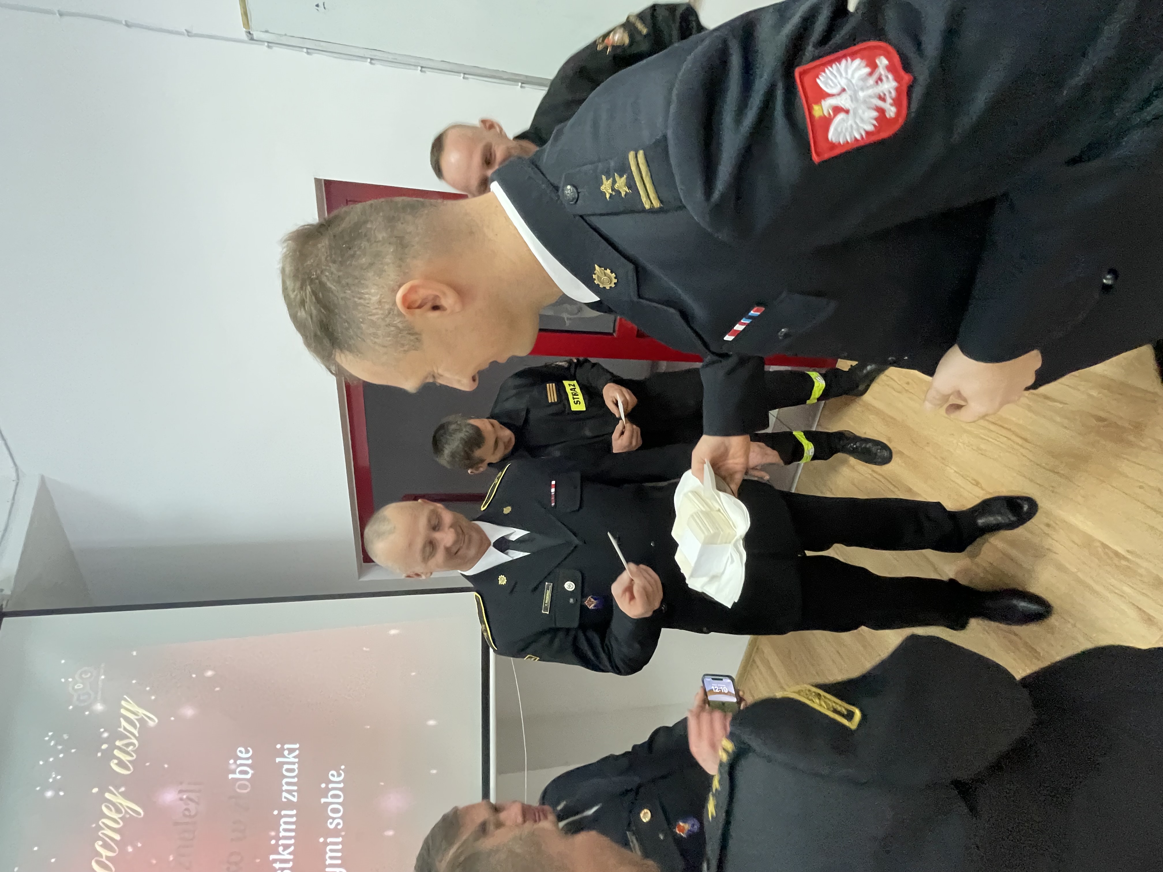 Komendant Miejski PSP przekazał wszystkim funkcjonariuszom i pracownikom cywilnym oraz ich rodzinom życzenia bożonarodzeniowe. W swoim wystąpieniu podziękował także za zaangażowanie
