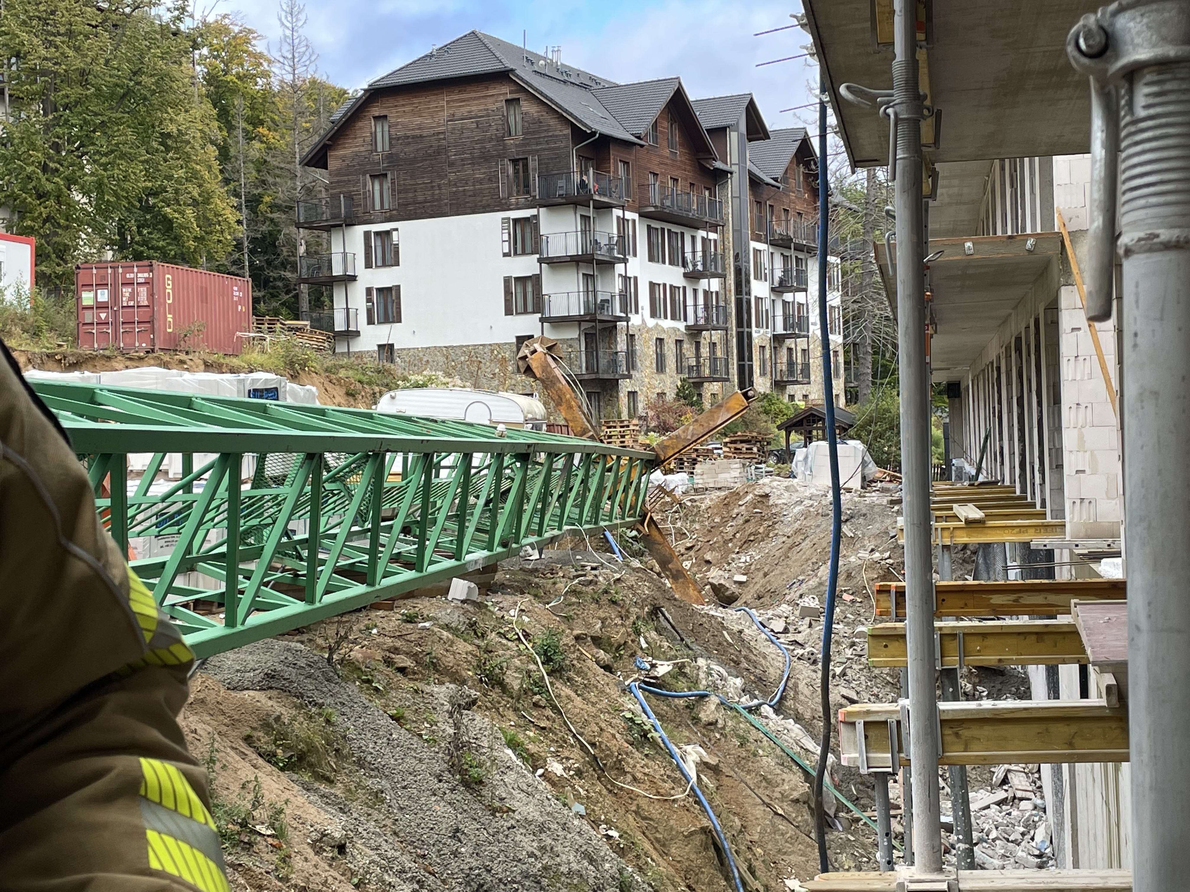 Wypadek żurawia wieżowego na placu budowy w Szklarskiej Porębie