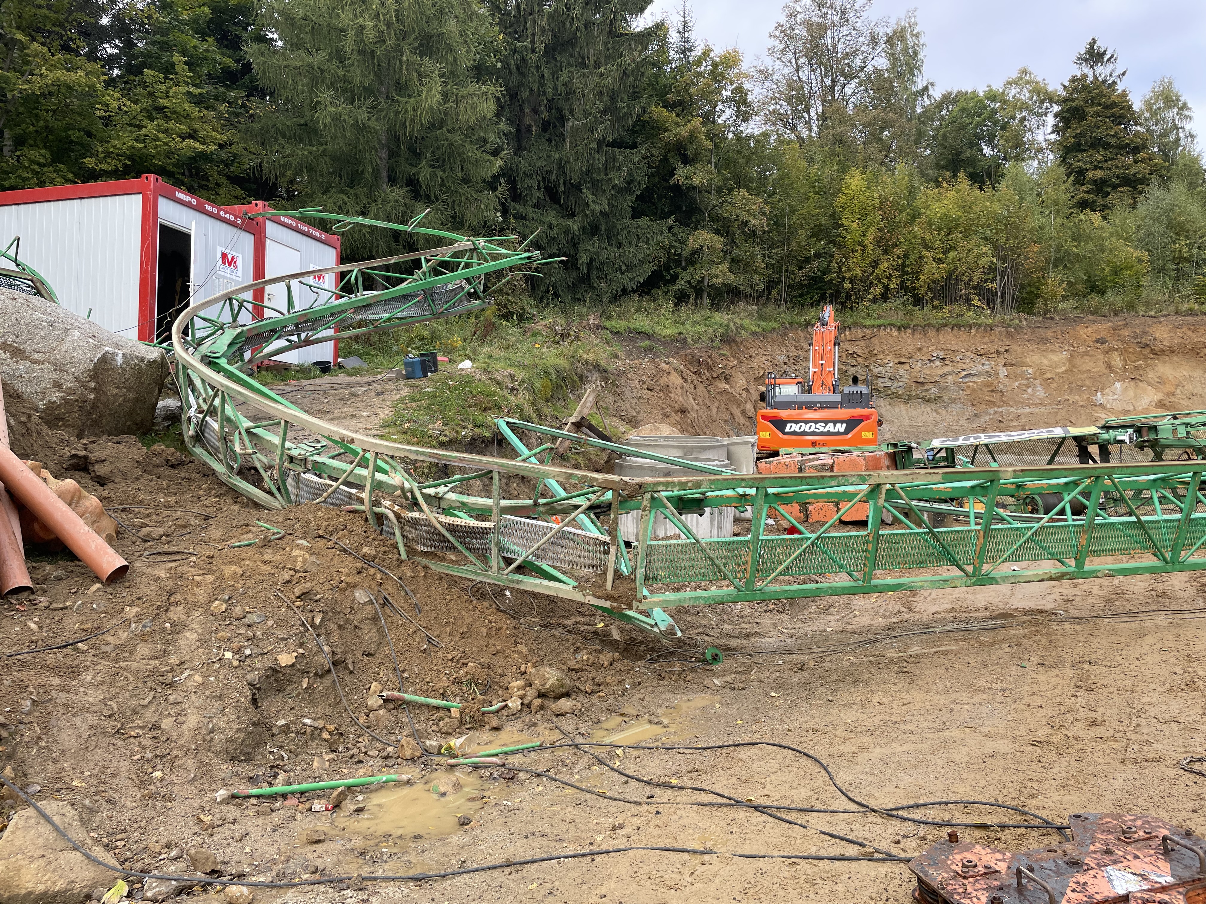 13 października o godzinie 11:45 dyżurny Stanowiska Kierowania Komendanta Miejskiego PSP w Jeleniej Górze odebrał zgłoszenie, o przewróceniu się żurawia wieżowego na terenie budowy w Szklarskiej Porębie. Do zdarzenia zostały zadysponowane dwa zastępy Państwowej Straży Pożarnej z Jednostki Ratowniczo-Gaśniczej nr 1 oraz jeden zastęp z Ochotniczej Straży Pożarnej w Szklarskiej Porębie.