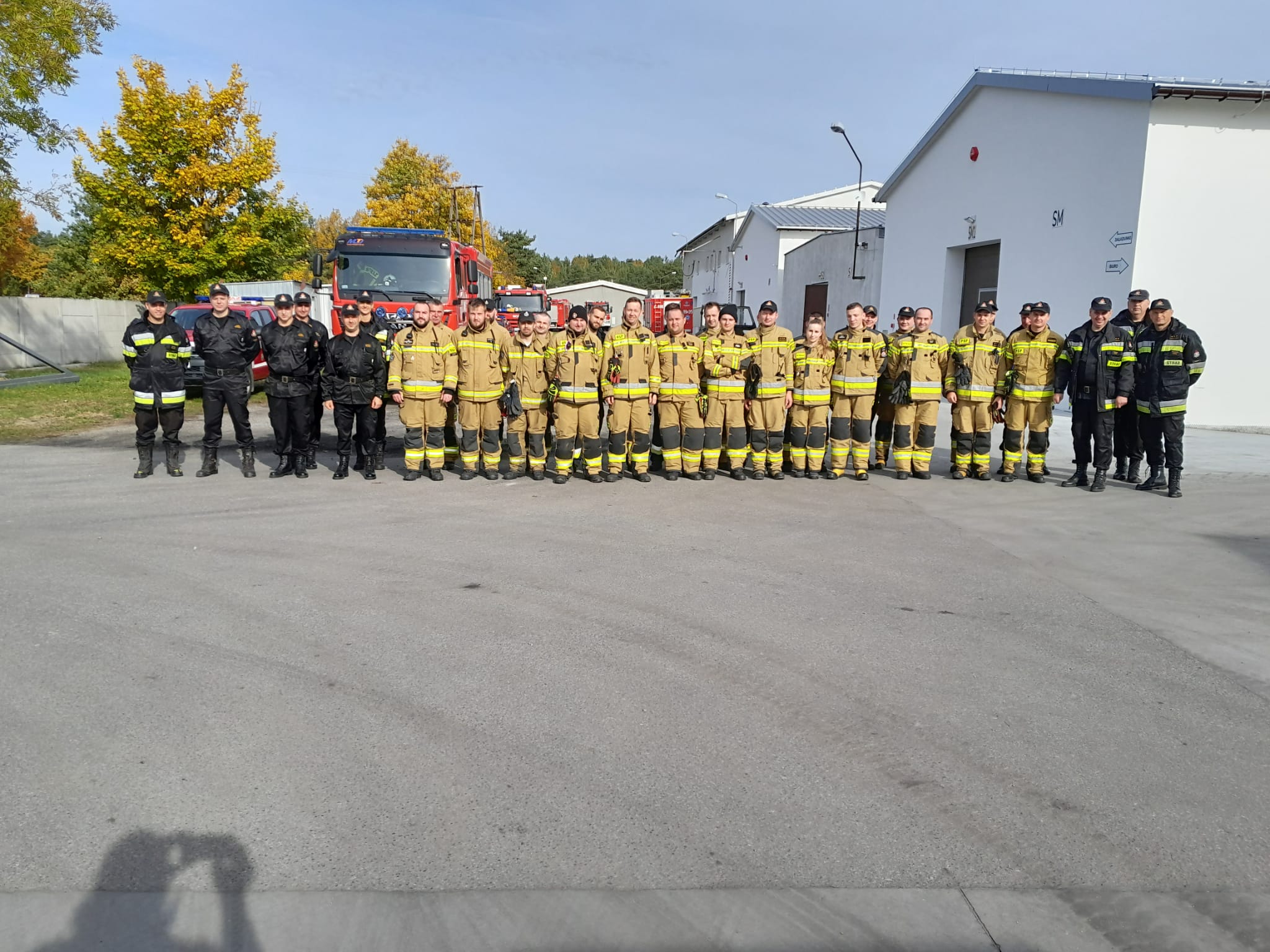 W dniu 20 października 2021 roku na terenie firmy JAG w miejscowości Lisków miały miejsce ćwiczenia jednostek Państwowej i Ochotniczej Straży Pożarnej. Konieczność przeprowadzenia ćwiczeń w tym miejscu była podyktowana tym, iż jest to Zakład Zwiększonego Ryzyka. Scenariusz ćwiczeń zakładał pożar hali magazynowej. Na miejsce prócz zastępów z JRG 1 i 2, pobliskiej jednostki OSP Lisków przybył również Pluton Gaśniczy „Kalisz” składający się z jednostek: OSP Kalisz-Lis, OSP Kalisz-Dobrzec, OSP Pólko. Łącznie w ćwiczeniach uczestniczyło 34 strażaków z wymienionych jednostek oraz KM PSP w Kaliszu. W założeniu ujęto pożar w jednym z budynku magazynowych JAG w którym znajduje się hala przetwórstwa pianki poliuretanowej. Osobą zgłaszającą był pracownik zakładu który zauważył pożar. W trakcie zgłaszania pozyskano informację, że rozpoczęto ewakuację pracowników firmy JAG. Po dojeździe na miejsce okazało się, że pożar magazynu jest rozwinięty. w związku z czym KDR podejmuje decyzje o zadysponowaniu Plutonu WOO Kalisz w celu budowy magistrali wodnej z pobliskiego punktu czerpania wody oddalonego o 400 metrów od miejsca pożaru. Do czasu wykonania magistrali wodnej, zaopatrzenie wodne realizowane jest z hydrantów na ternie zakładów. Duża dynamika rozwoju pożaru, na którą miały wpływ zgromadzone materiały, w tym również te łatwopalne sprawiła, iż Kierujący Działaniem Ratowniczym podjął decyzję o zbudowaniu punktu czerpania wody na zbiorniku wodnym znajdującym się w pobliżu przedsiębiorstwa i przetłoczeniu z niego wody na miejsce pożaru za pomocą plutonu Gaśniczego KALISZ. Ćwiczenia przeprowadzone zostały w celu podniesienia gotowości bojowej jednostek PSP i OSP oraz zapoznania z charakterystyką przedsiębiorstwa JAG PPH Sp. z o. o. w Liskowie, znajdującego się na terenie działania KM PSP Kalisz. Szczególną uwagę podczas ćwiczeń zwrócono na zaopatrzenie wodne oraz jak najlepsze wykorzystanie zbiorników wodnych znajdujących się w bliskiej odległości od miejsca prowadzonych działań ratowniczo-gaśniczych, które przy pożarze tego typu obiektu odegrałby kluczową rolę. Dzięki zapewnieniu właściwego zaopatrzeniu wodnego, można było utrzymać odpowiednią wydajność podawania wody z kliku prądownic jednocześnie na palący się obiekt. Należy podkreślić duże zaangażowanie i zgranie ratowników PSP i OSP, gotowość do współpracy, jak również chęć uczestniczenia w tego typu ćwiczeniach. Taka postawa ma znaczący wpływ na podniesienie skuteczności działań ratowniczo-gaśniczych w przypadku prowadzenia prawdziwej akcji.