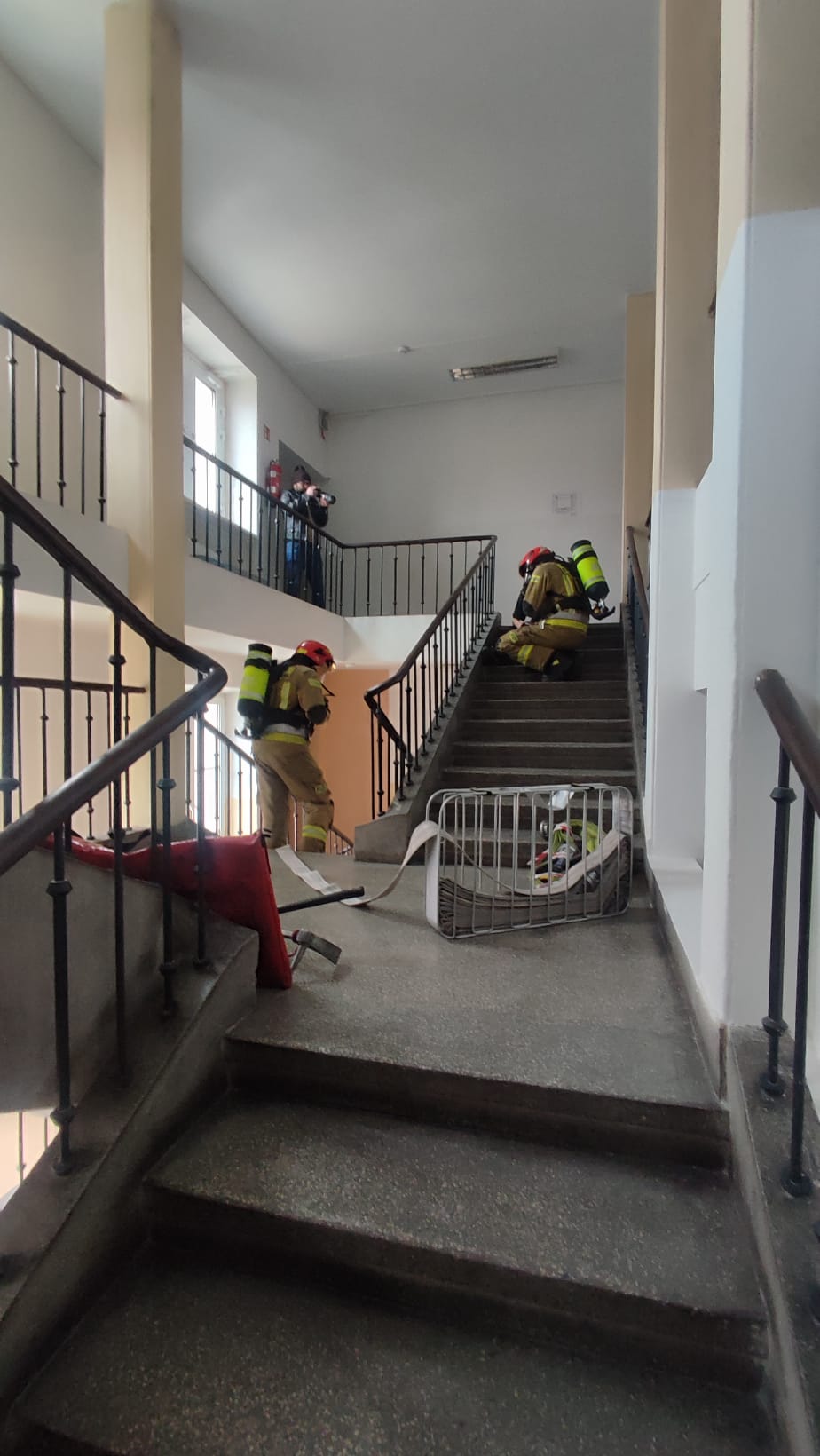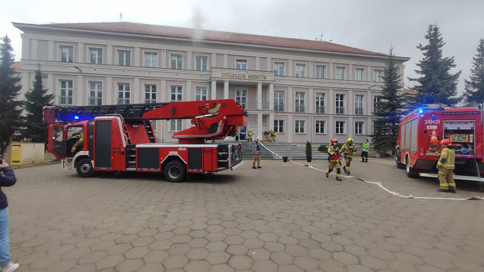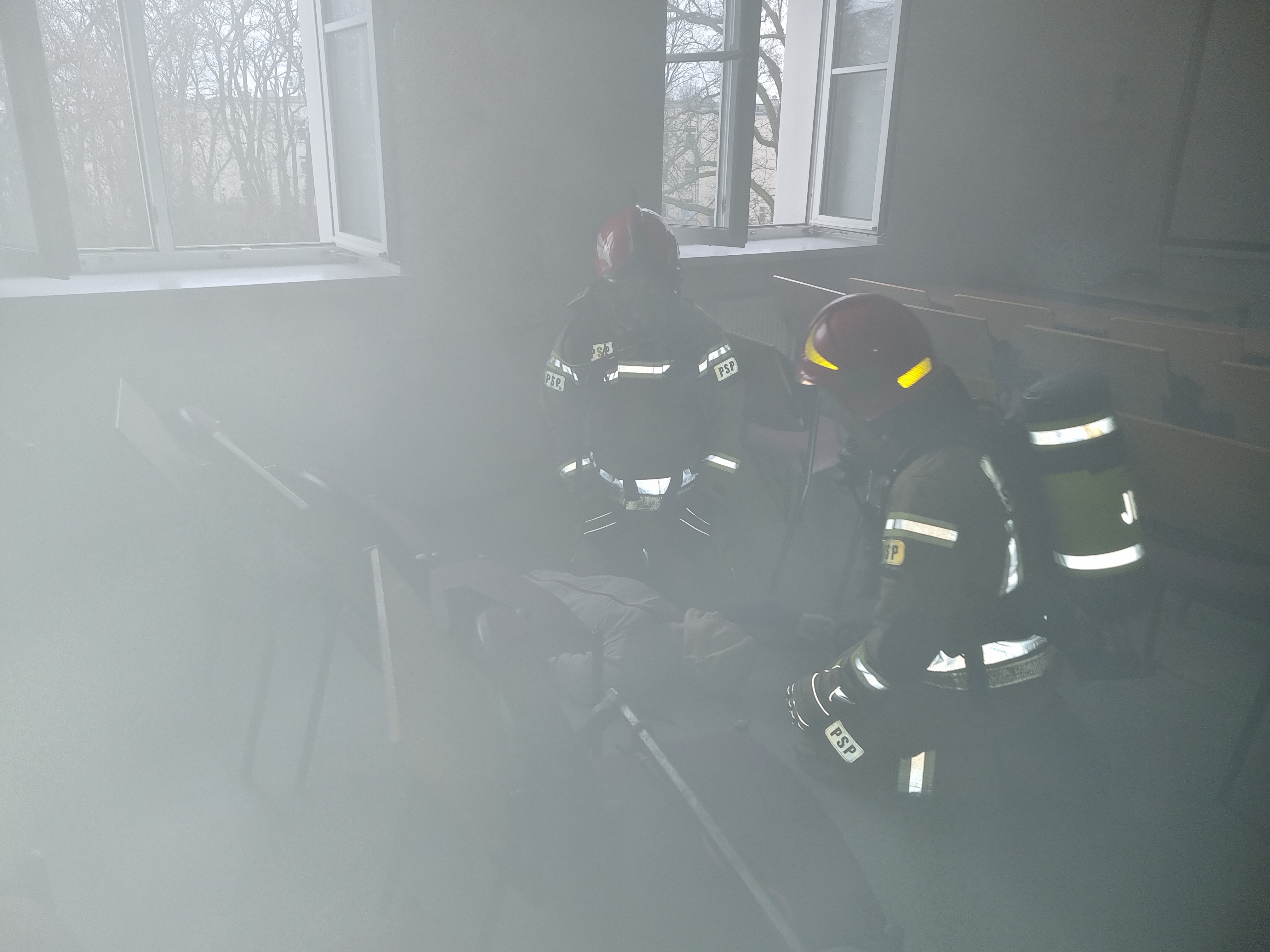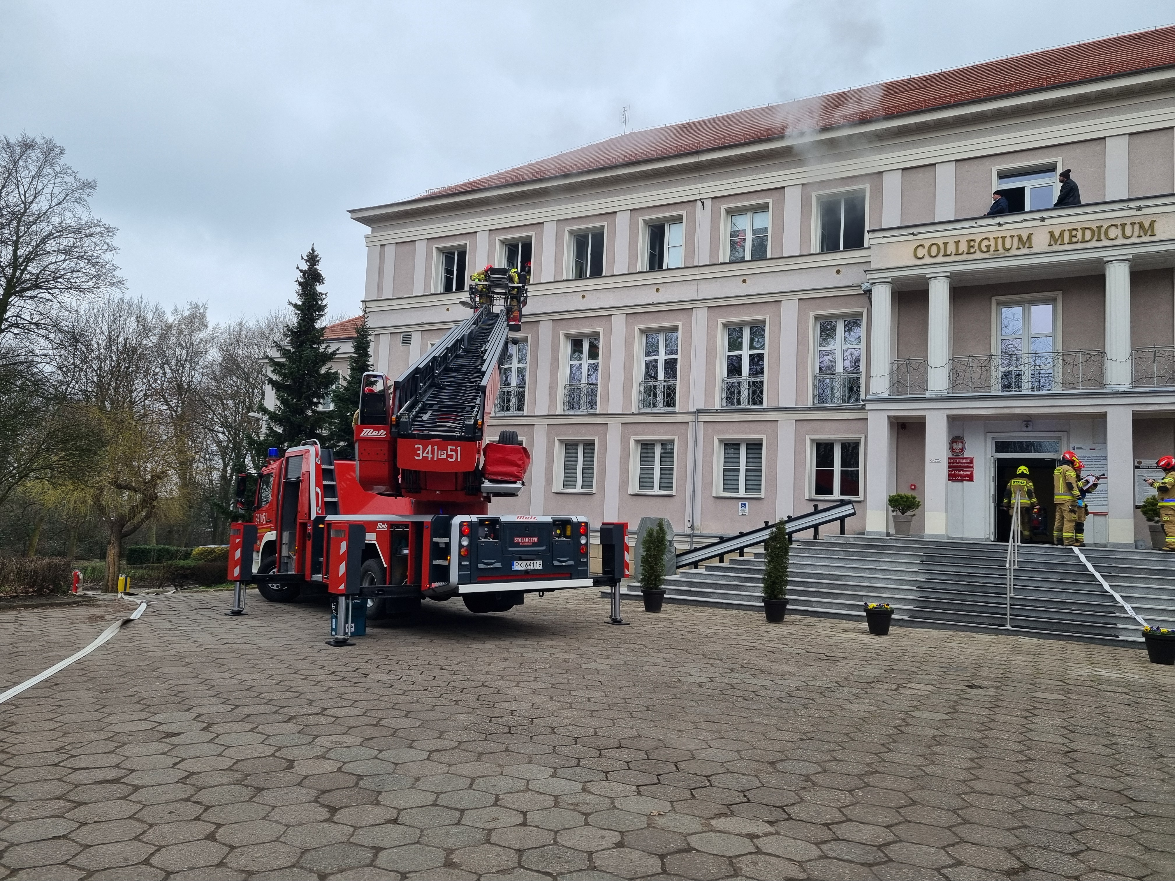 5 marca br. na terenie Wydziału Medycznego i Nauk o Zdrowiu Uniwersytetu Kaliskiego przeprowadzone zostały ćwiczenia taktyczno - bojowe połączone z rozpoznaniem operacyjnym obiektu. Ćwiczenie praktyczne obejmowało prowadzenie działań ratowniczych związanych z gaszeniem pożarów wewnątrz obiektu. W ćwiczeniu w dniu 5 marca br. wzięło udział 9 zastępów, reprezentujących jednostki PSP oraz OSP z terenu Miasta Kalisza i powiatu kaliskiego. Łącznie w ćwiczeniach uczestniczyło 35 strażaków. Na ćwiczeniach obecny był również Komendant Miejski Państwowej Straży Pożarnej w Kaliszu st. bryg. Tomasz Polak wraz z Zastępcą Komendanta Miejskiego Państwowej Straży Pożarnej w Kaliszu st. kpt. Damianem Knopem. W założeniu ujęto, pożar w jednym z pomieszczeń na poddaszu wewnątrz budynku uczelni. Zgłoszenie do SKKM w Kaliszu trafiło poprzez monitoring pożarowy. W obiekcie rozpoczęto ewakuację pracowników oraz studentów. Po dojeździe na miejsce okazało się, że pożar jest rozwinięty, w związku z czym podjęto decyzję o budowie zaopatrzenia wodnego z hydrantów na terenie obiektu oraz wpuszczeniu ratowników do środka budynku w celu lokalizacji, a następnie ugaszenia pożaru. Ćwiczenia przeprowadzone zostały w celu podniesienia gotowości bojowej oraz zapoznania z charakterystyką obiektu przez jednostki PSP oraz OSP. Szczególną uwagę podczas ćwiczeń zwrócono na zaopatrzenie wodne, które przy pożarach w tego typu obiektach odgrywałoby kluczową rolę. Ćwiczenie zakończone zostały podsumowaniem w obecności Komendanta Miejskiego, Zastępcy Komendanta Miejskiego Państwowej Straży Pożarnej w Kaliszu oraz przedstawiciela obiektu, na którym wymieniono się cennymi uwagami oraz nasuwającymi się spostrzeżeniami.