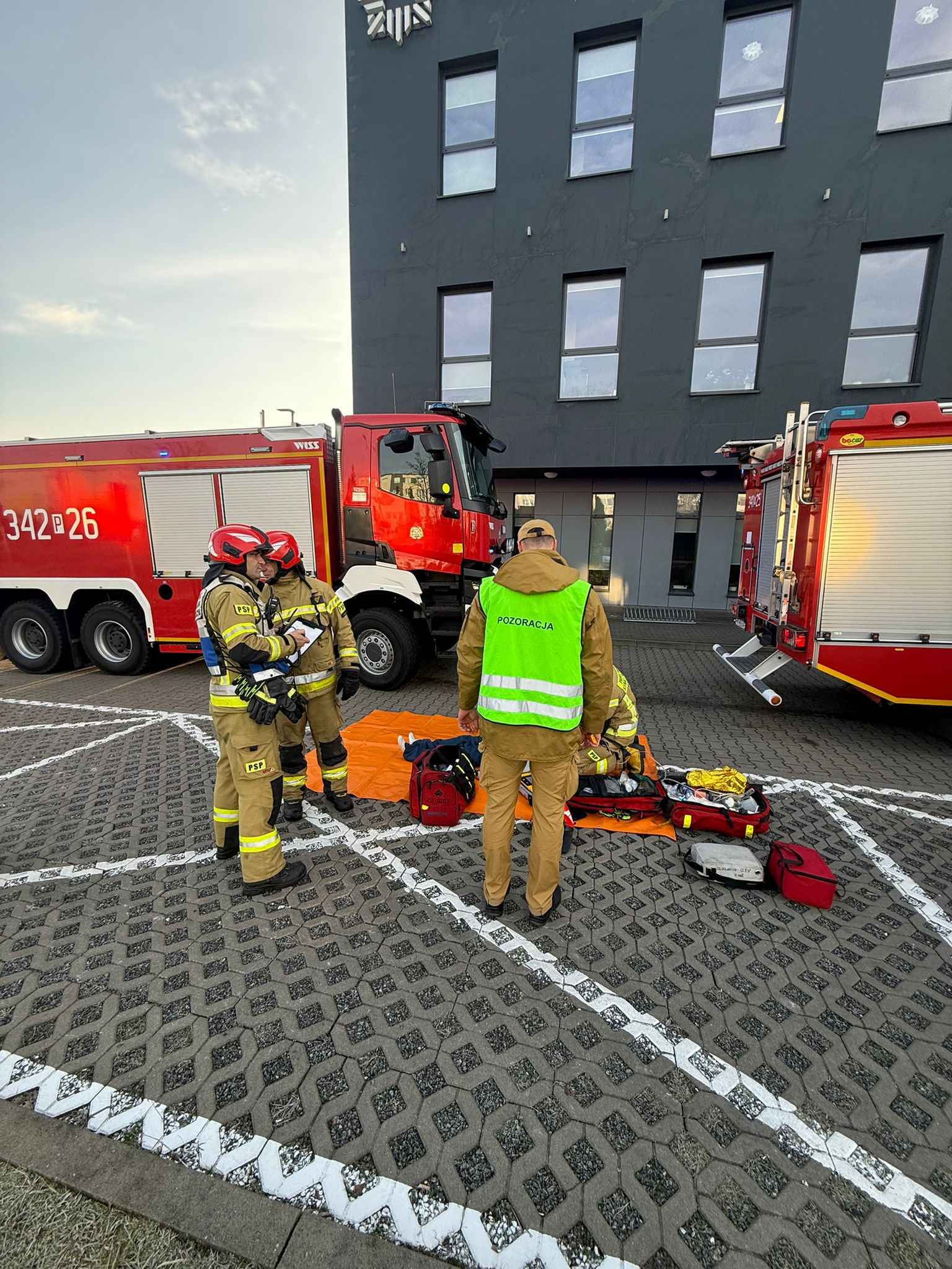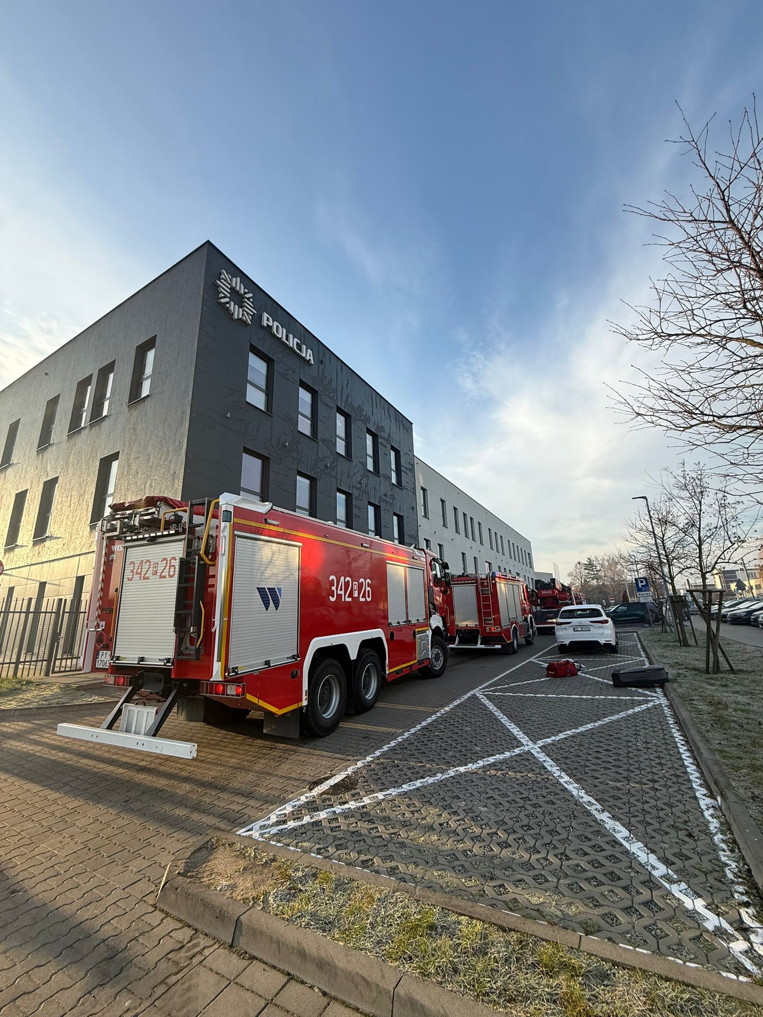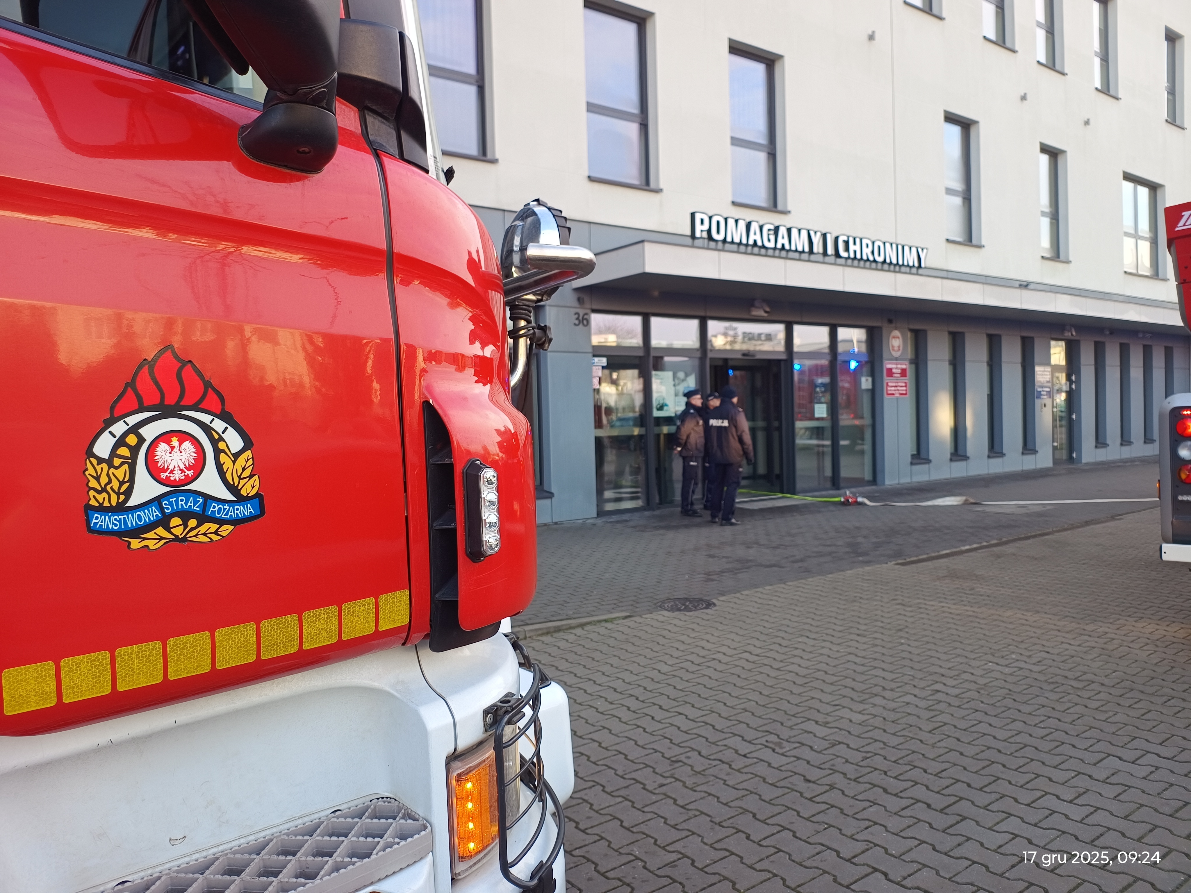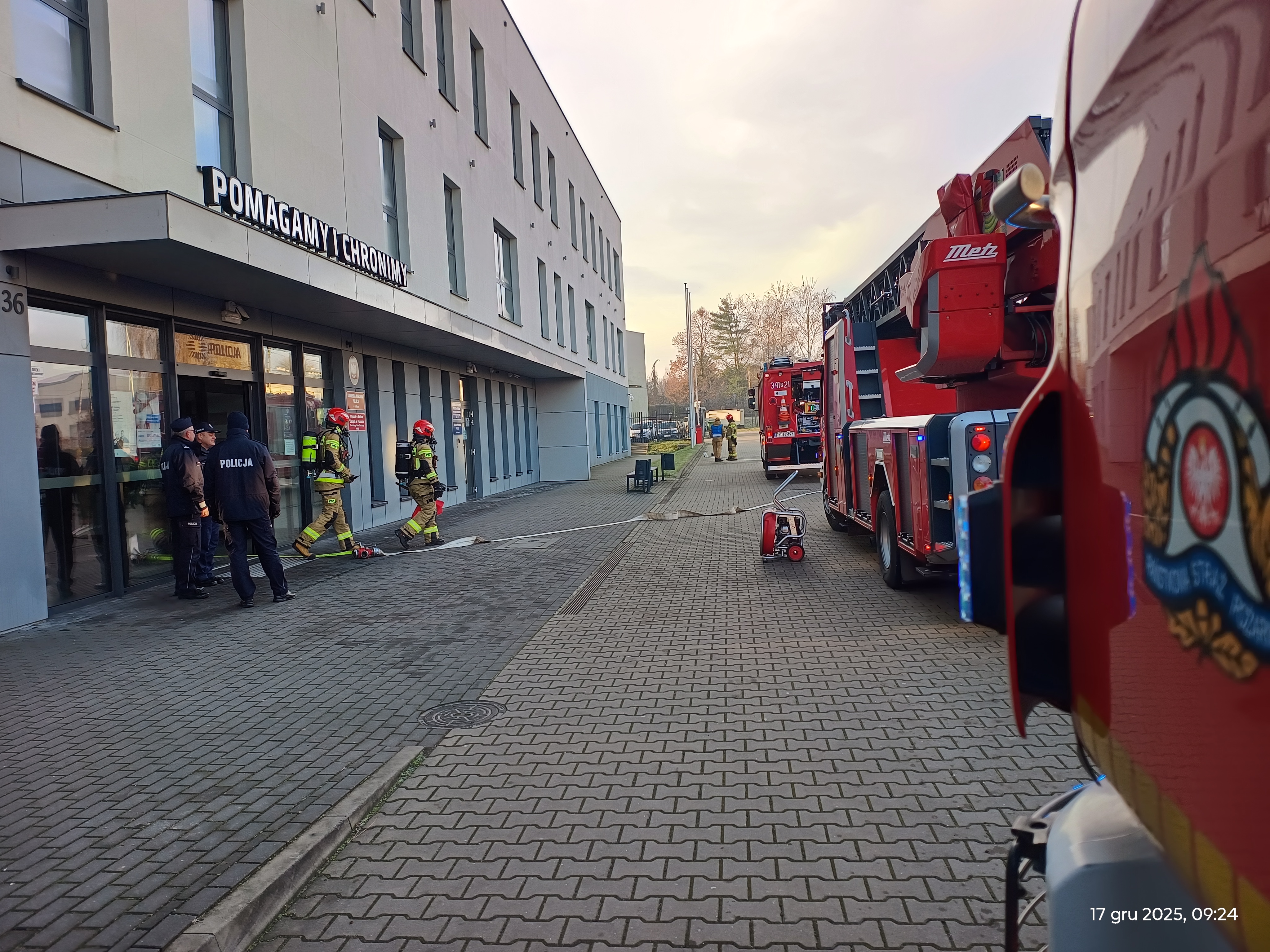 W dniu 17 grudnia 2025 r. na terenie obiektu Komendy Miejskiej Policji w Kaliszu przy ul. Kordeckiego odbyły się ćwiczenia ratowniczo-gaśnicze. Głównym ich założeniem było sprawdzenie gotowości operacyjnej oraz doskonalenie współdziałania służb w przypadku wystąpienia pożaru w budynku użyteczności publicznej.