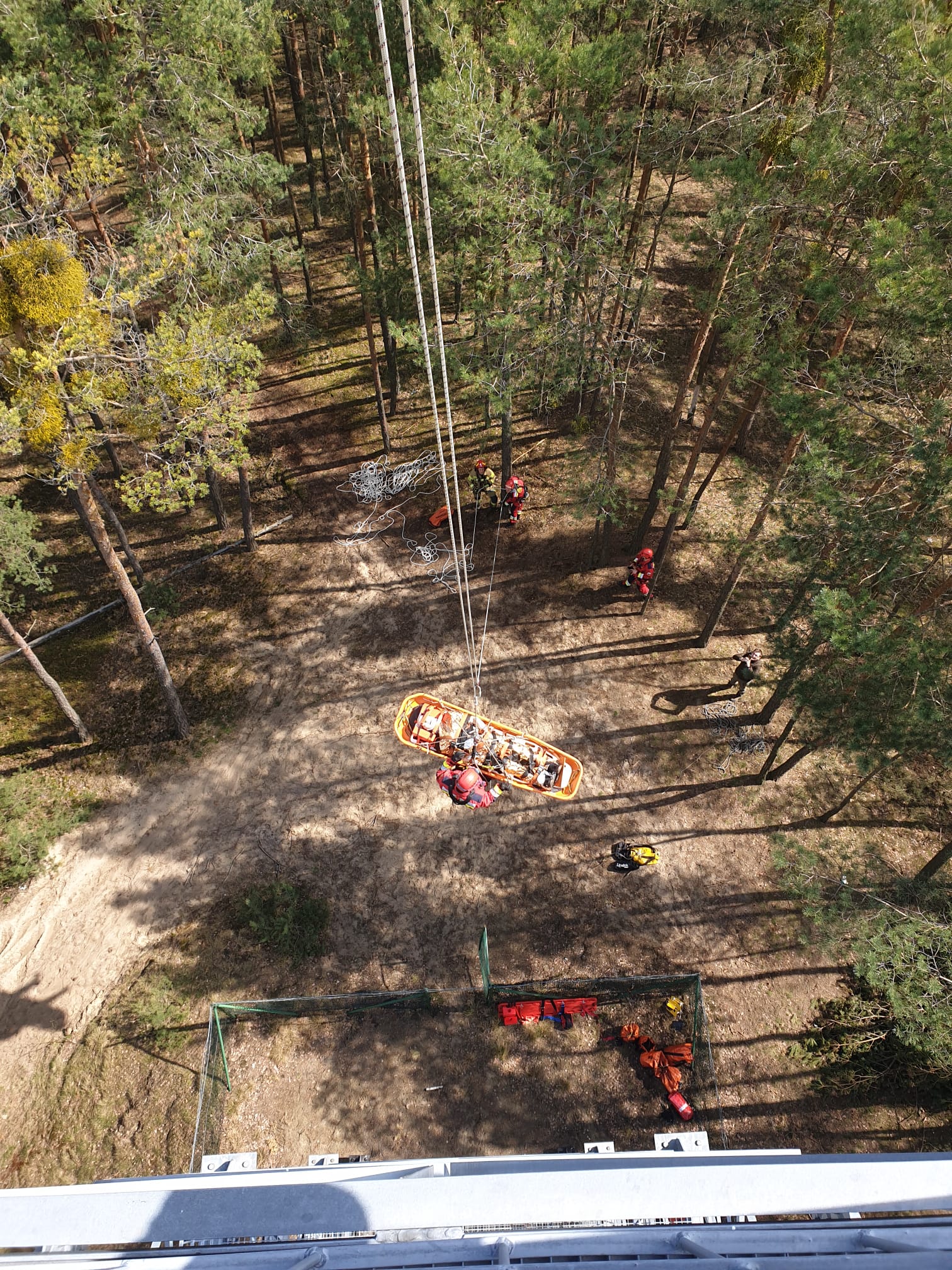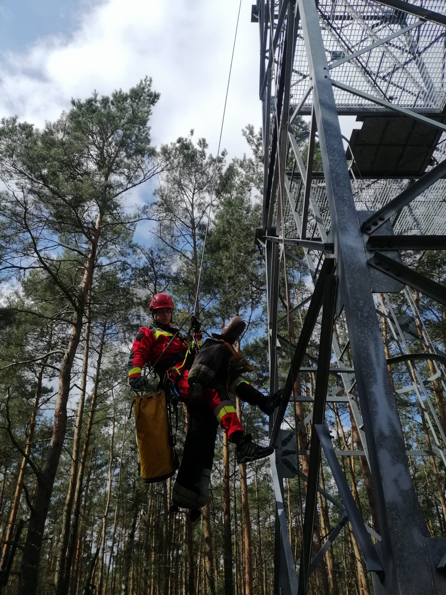 W dniach 26, 27, 28 kwietnia na terenie Nadleśnictwa Grodziec przeprowadzone zostały ćwiczenia z zakresu ratownictwa wysokościowego dla zmian służbowych z JRG 1 oraz Specjalistycznej Grupy Ratownictwa Wysokościowego Kalisz. Założenia jakie zostały przyjęte podczas ćwiczeń to szybkie dotarcie do dwóch osób poszkodowanych na dostrzegalni przeciwpożarowej, udzielenie kwalifikowanej pierwszej pomocy oraz bezpieczne ewakuowanie osób na ziemię z wysokości ok. 30 m.