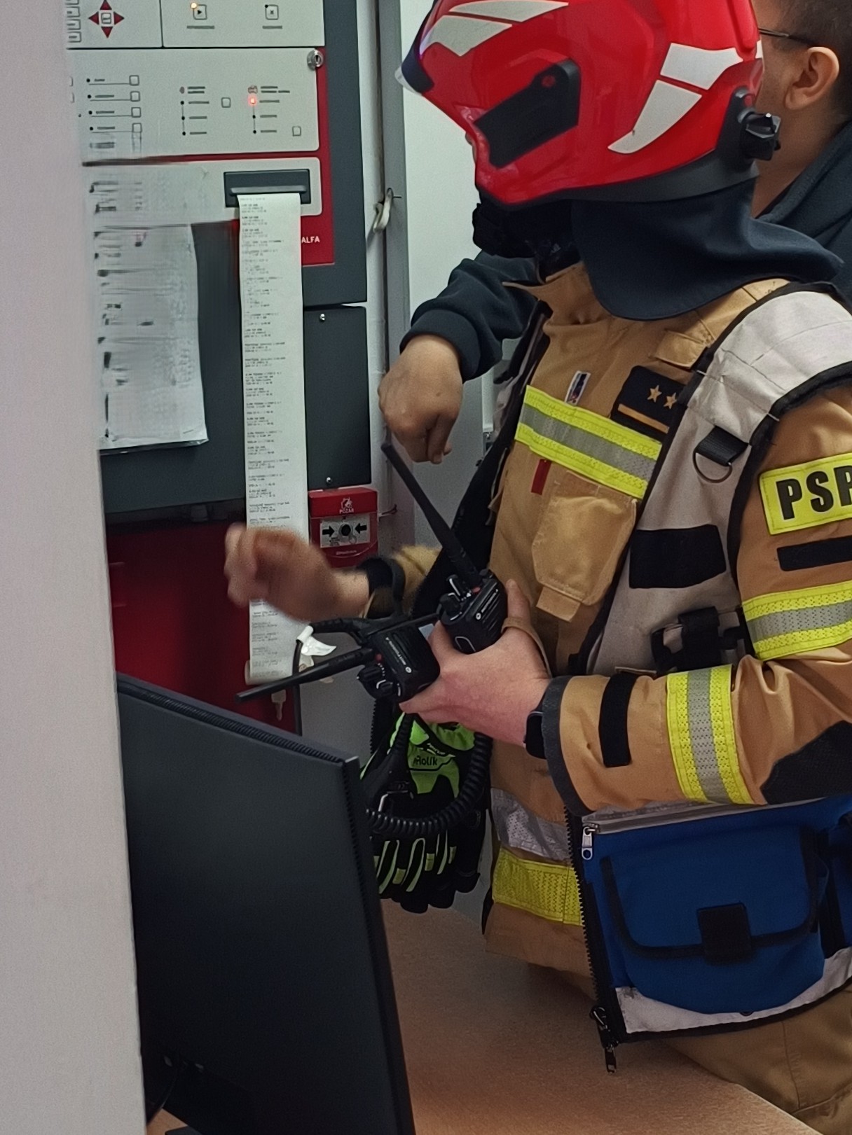 - Wprowadzeniu rot ratowniczych w aparatach ochrony układu oddechowego do wnętrza budynku w celu lokalizacji źródła ognia.