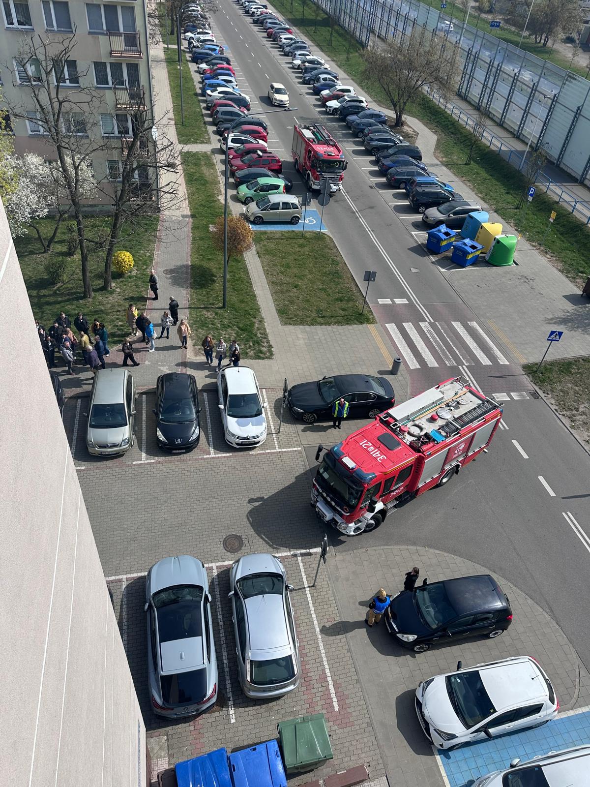 Zgodnie ze scenariuszem ćwiczeń, o godzinie 11:30 do Stanowiska Kierowania Komendanta Miejskiego (SKKM) w Kaliszu wpłynęło zgłoszenie telefoniczne od pracownika ZUS o pożarze w jednym z pomieszczeń na czwartym piętrze budynku.