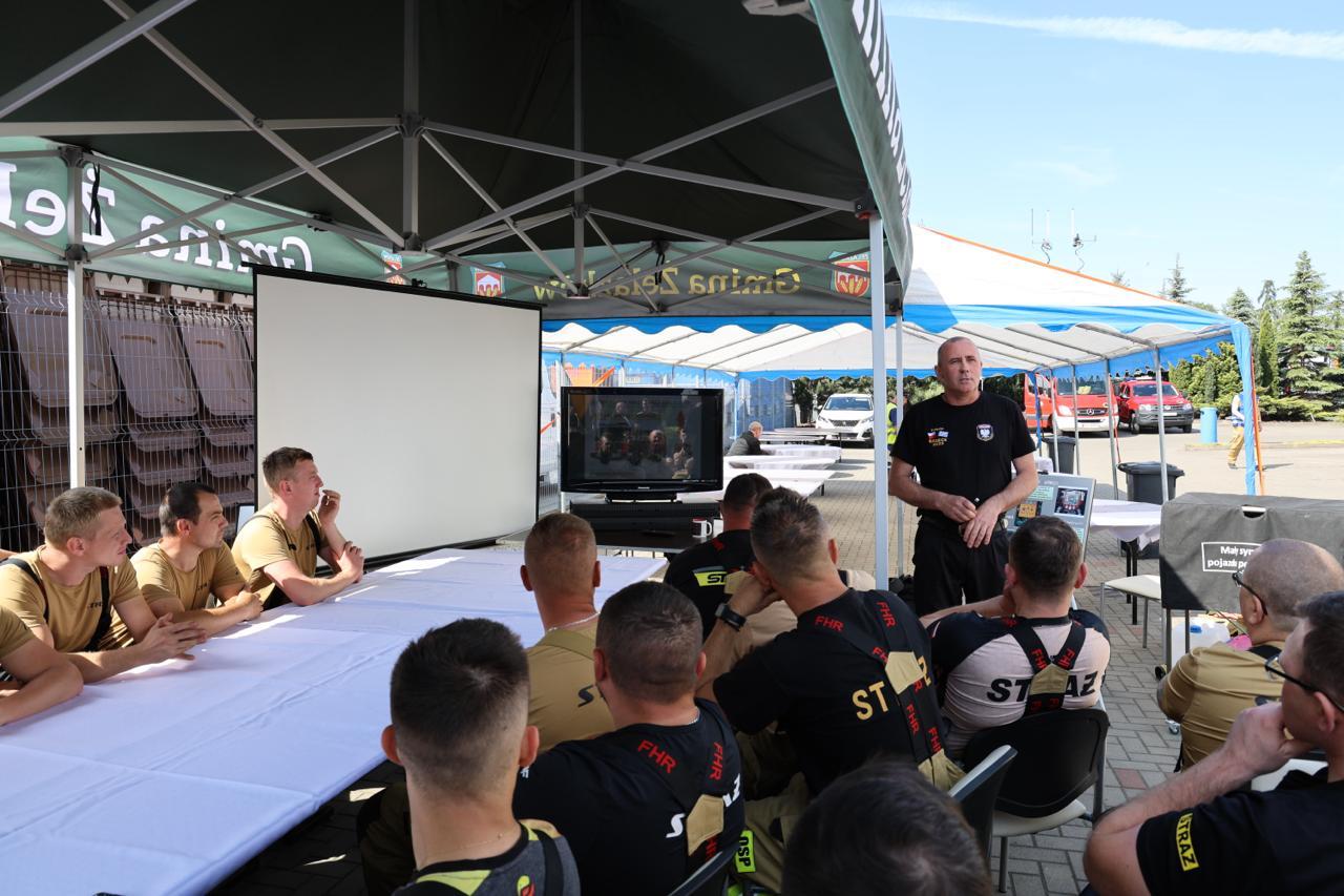 Na początku ćwiczeń wszystkich przybyłych powitał Wójt Gminy Żelazków Pan Michał Kraszkiewicz oraz Prezes Zarządu Przedsiębiorstwa Oczyszczania Miasta EKO sp. z o.o. Pan Sławomir Rudowicz. Następnie wszyscy uczestnicy ćwiczeń uczestniczyli w zajęciach teoretycznych z zakresu obsługi autopomp, układów wodno-pianowych i zasad przetłaczania i przepompowywania, które poprowadził funkcjonariusz z KP PSP Gniezno asp. Mariusz Janowicz, który prowadził wielokrotnie m.in. ćwiczenia POMPA na terenie województwa wielkopolskiego i został zaproszony przez współorganizatorów ćwiczeń OSP Czartki oraz Pólko. Po części teoretycznej strażacy zastosowali pozyskaną wiedzę w trakcie założenia praktycznego, które zostało przedstawione na początku artykułu. Na koniec w formie warsztatowej odbyły się zajęcia praktyczne z budowy Punktu Czerpania Wody oraz obsługi układów-wodno-pianowych pojazdów ratowniczo-gaśniczych, które przybyły na ćwiczenia.