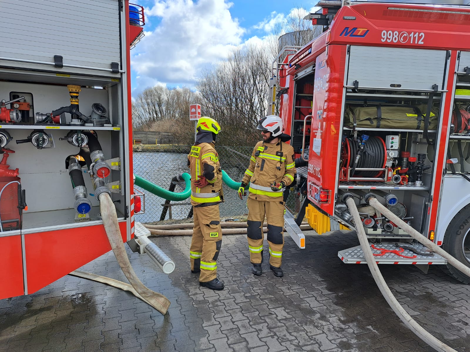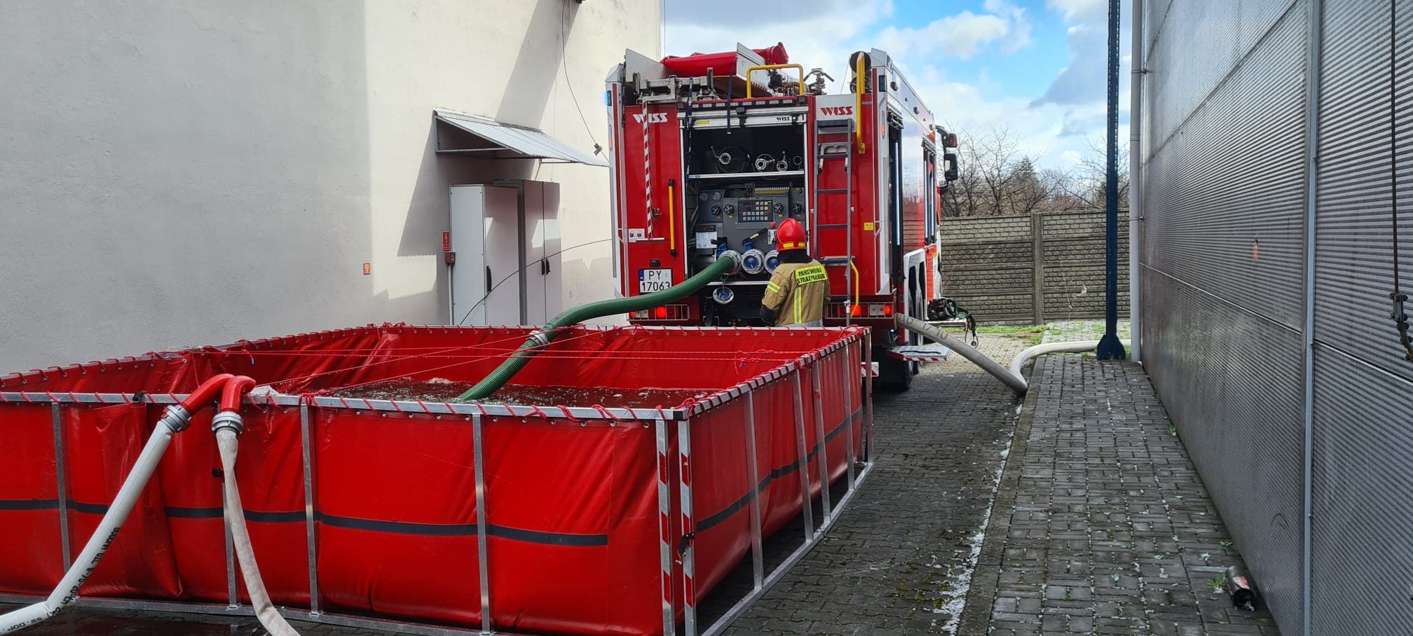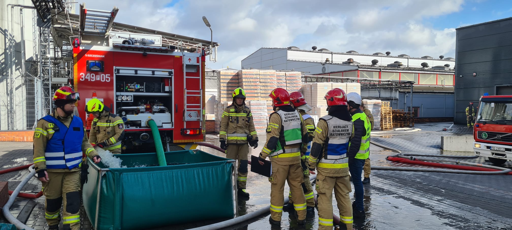 W dniu 28 marca 2023 oku na terenie zakładu AWW w Niedźwiadach odbyły się ćwiczenia z zakresu gaszenia pożarów hal produkcyjnych. Wyżej wymieniony zakład na podstawie Rozporządzenia Ministra Rozwoju z dnia 29 stycznia 2016 r. w sprawie rodzajów i ilości znajdujących się w zakładzie substancji niebezpiecznych, decydujących o zaliczeniu zakładu do zakładu o zwiększonym ryzyku lub dużym ryzyku wystąpienia awarii przemysłowej (Dz. U. z 2016, poz. 138 ), zalicza się do zakładu zwiększonego ryzyka. Scenariusz ćwiczeń zakładał, iż o godz. 10:00 do Stanowiska Kierowania Komendanta Miejskiego Państwowej Straży Pożarnej w Kaliszu został zgłoszony pożar w jednym z budynków Grupy AWW – budynek G. Osobą zgłaszającą był pracownik zakładu który zauważył pożar. W trakcie zgłaszania pozyskano informację, że rozpoczęto ewakuację pracowników firmy AWW. Po dojeździe na miejsce okazało się, że pożar magazynu jest rozwinięty, w związku z czym Kierujący Działaniem Ratowniczym podjął decyzję o podaniu łącznie 4 prądów wody w natarciu (dwa działka przenośne, jedno działko przewoźne, jedno działko z SH) oraz zadysponowaniu Plutonu WOO Kalisz w celu zbudowania zaopatrzenia wodnego z pobliskiego punktu czerpania wody oddalonego o kilkaset metrów. Kierownik przeprowadzający ewakuację przekazał Kierującemu Działaniem Ratowniczym, że brakuje dwóch osób, które najprawdopodobniej przebywały w magazynie. Jednym z kolejnych elementów tego założenia, było uwolnienie tych osób, ewakuacja oraz udzielenie Kwalifikowanej Pierwszej Pomocy. W działaniach prócz Jednostki Ratowniczo Gaśniczej nr 1 i 2, Plutonu Wojewódzkiego Odwodu Operacyjnego w skład którego wchodzą takiej jednostki jak: OSP Pólko, OSP Kalisz Lis, OSP Dobrzec w Kaliszu wzięła również udział jednostka z OSP Kalisz-Sulisławice. W sumie na terenie zakładu AWW w Niedźwiadach ćwiczyło 43 strażaków, w tym obsada Samochodu Dowodzenia i Łączności z Komendy Miejskiej Państwowej Straży Pożarnej w Kaliszu, których wspomagał łączność na terenie działań. Ćwiczenia, prócz pracowników zakładu odpowiedzialnych za bezpieczeństwo pożarowe obserwował również Zastępca Komendanta Miejskiego Państwowej Straży Pożarnej w Kaliszu st. kpt. Damian Knop.