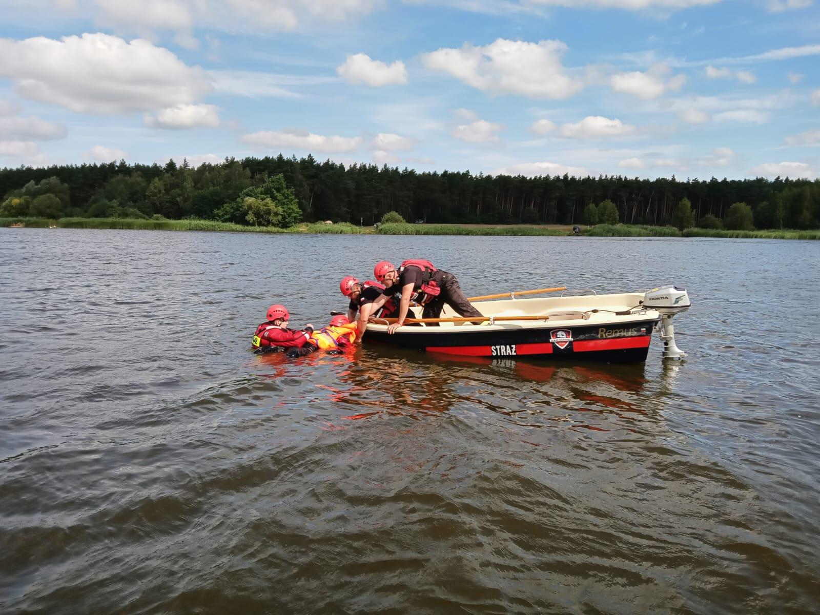 - Praktyczne sprawdzenie umiejętności podjęcia osoby topiącej się w wodzie na brzeg oraz podjęcie na pokład łodzi.