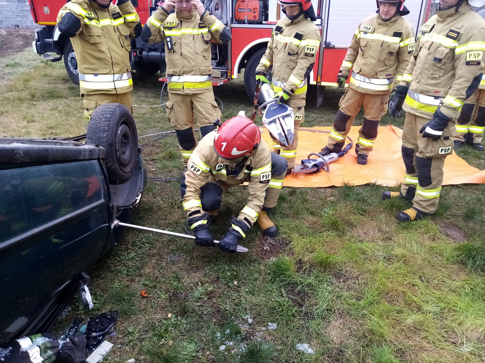 i przećwiczono działania w symulowanym zdarzeniu drogowym, w którym to samochód osobowy znajdował się na dachu. We wraku pojazdu znajdowała się osoba poszkodowana, do której należało wykonać dostęp w celu dotarcia ratownika do osoby poszkodowanej przy zastosowaniu odpowiednich technik z użyciem sprzętu hydraulicznego. Po dotarciu do osoby poszkodowanej sprawdzono jej parametry życiowe i stan ogólny, a także wstępnie przygotowano ją do wyciągnięcia
