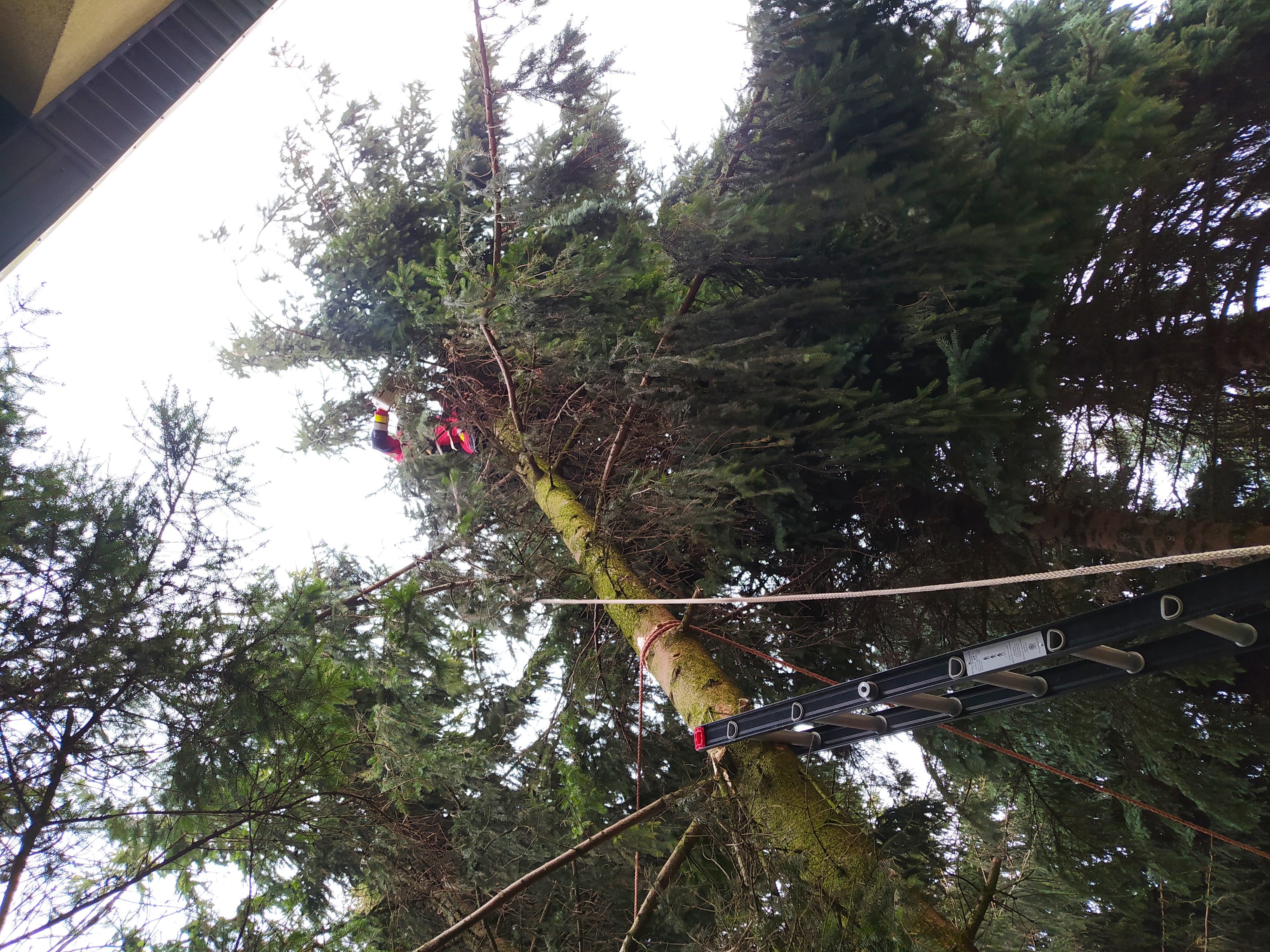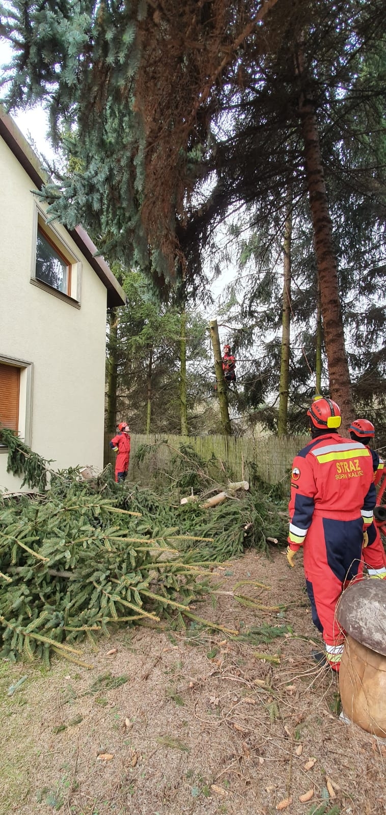 W dniu 31.01.2022 r. w związku z silnymi wiatrami do Stanowiska Kierowania Komendanta Miejskiego w Kaliszu wpłynęło zgłoszenie o niebezpiecznie pochylonych drzewach na jednej z posesji w miejscowości Szałe w gminie Opatówek. Na miejscu zdarzenia ustalono, że dwa drzewa są przechylone, tym samym zagrażając życiu i zdrowiu mieszkańcom posesji oraz budynkowi mieszkalnemu. Ze względu na utrudniony dostęp podnośnika hydraulicznego do jednego z drzew na miejsce zdarzenia zadysponowano Specjalistyczną Grupę Ratownictwa Wysokościowego Kalisz. Ratownicy wysokościowi przy użyciu technik alpinistycznych przeprowadzili sekcyjną wycinkę drzewa usuwając zagrożenie. Drugie drzewo zostało wycięte przy użyciu podnośnika. W działaniach brały udział jednostki z JRG 1 i JRG 2 Kalisz.