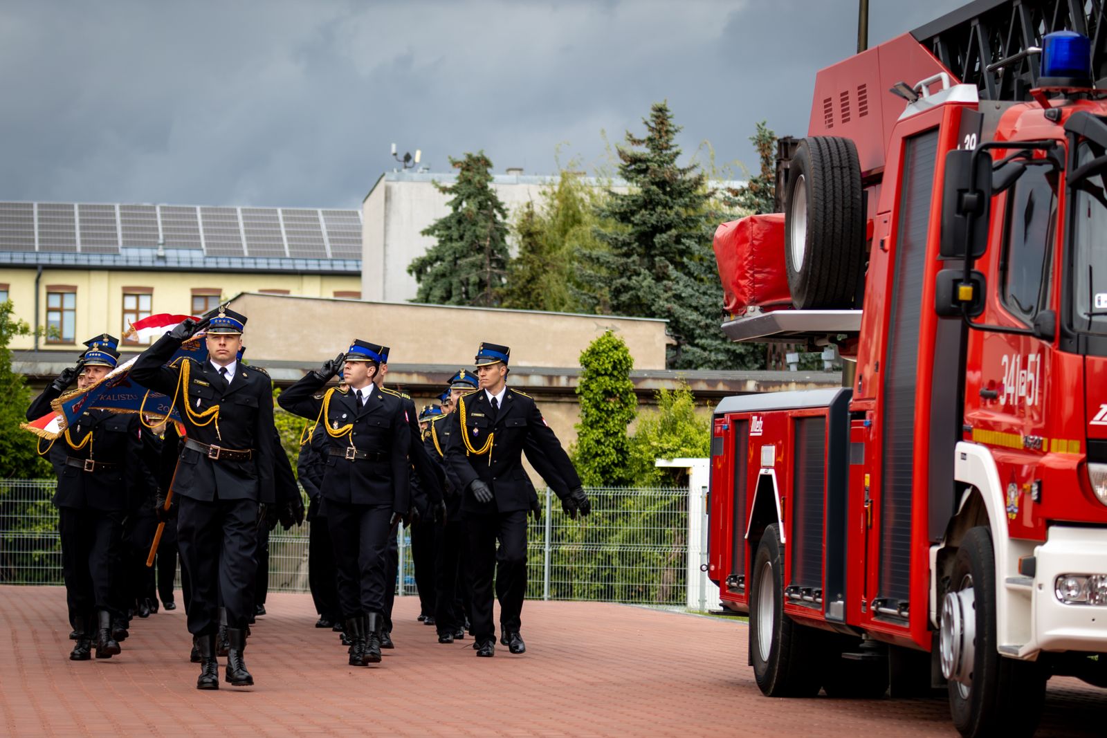 Podczas uroczystości głos zabrał również Komendant Miejski Państwowej Straży Pożarnej w Kaliszu, który podziękował funkcjonariuszom i druhom za ich pracę podczas działań ratowniczo-gaśniczych oraz codzienną służbę. Nawiązał w swoim wystąpieniu do jubileuszu 30 – lecia Krajowego Systemu Ratowniczo – Gaśniczego oraz przedstawił zadania do realizacji wynikające z Ustawy o ochronie ludności i obronie cywilnej.