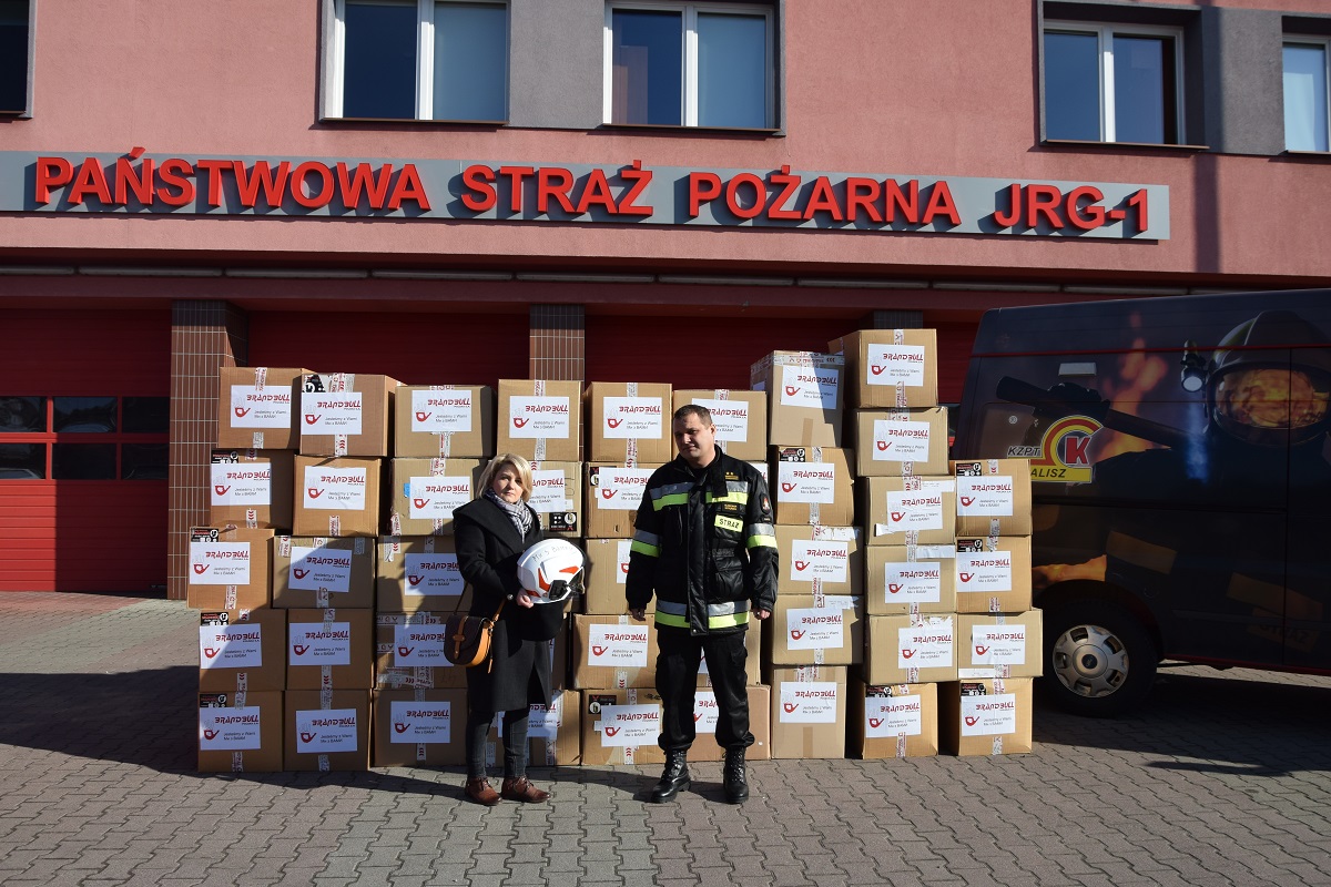 Firma BRANDBULL POLSKA SPÓŁKA AKCYJNA zajmująca się produkcją sprzętu pożarniczego, której siedziba znajduje się również w Kaliszu przy ul. Przybrzeżnej 37 przekazała nieodpłatnie na rzecz ukraińskich strażaków sprzęt. Buty, hełmy i rękawice strażackie dzięki logistycznemu wsparciu Państwowej Straży Pożarnej trafią za wschodnią granicę pomagając naszym braciom strażakom w ratowaniu zagrożonego życia ludzkiego w warunkach wojennych. Symboliczne przekazanie sprzętu odbyło się w siedzibie Jednostki Ratowniczo-Gaśniczej nr 1 w Kaliszu przy ulicy Nowy Świat. To wyjątkowy gest solidarności firmy z branży pożarniczej. W przekazaniu sprzętu ze strony Komendy Miejskiej Państwowej Straży Pożarnej w Kaliszu uczestniczył Komendant Miejski Państwowej Straży Pożarnej w Kaliszu bryg. Sławomir Kotoński oraz przedstawiciele firmy.