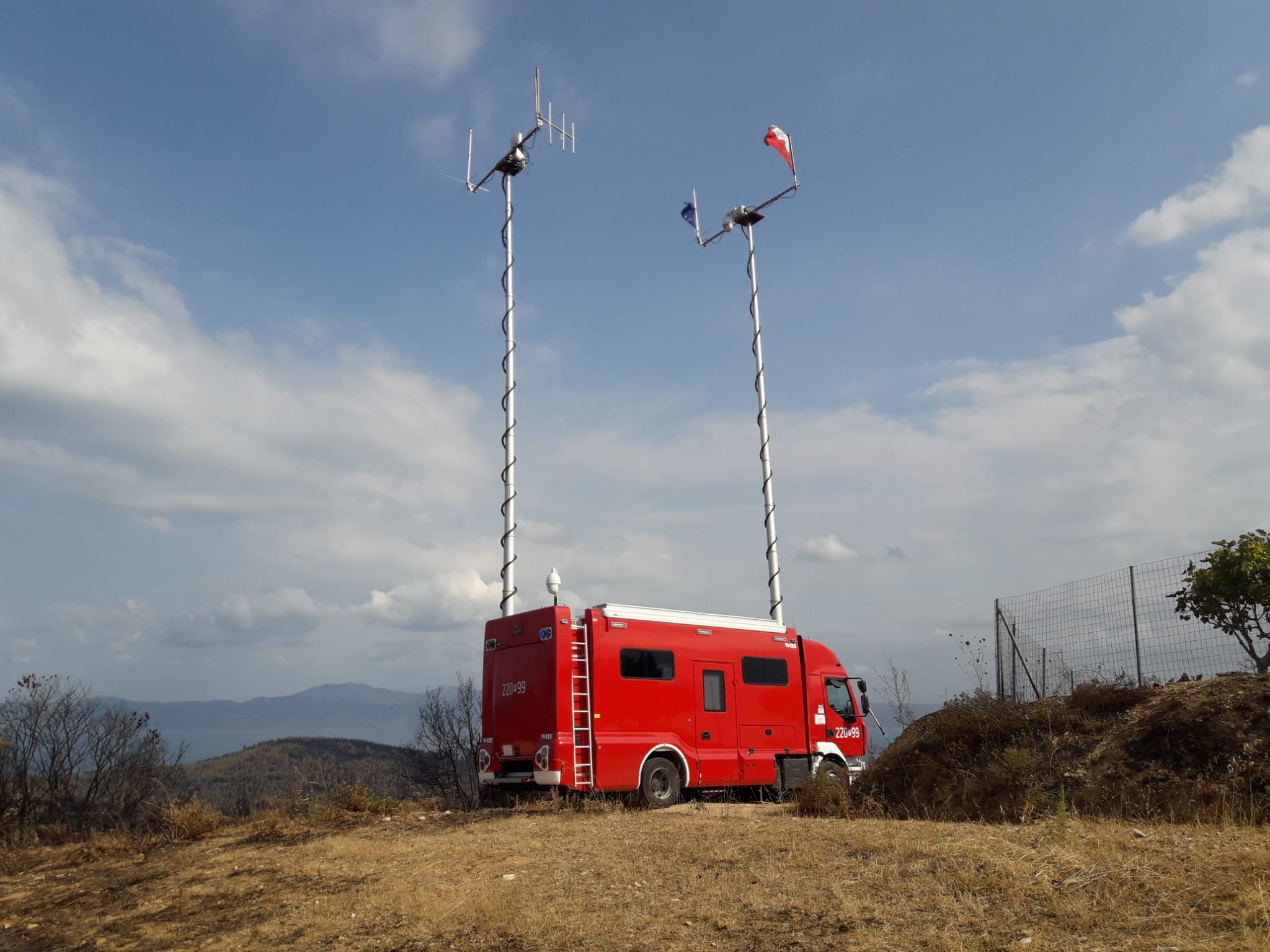 Polscy strażacy cały czas współpracują z lokalnymi strażakami oraz ratownikami, którzy przybyli na wyspę w ramach pomocy międzynarodowej. Miejscem działań gaśniczych są głównie okolice dwóch miejscowości Ellinika oraz Gouves. W chwili obecnej sytuacja w tym rejonie już się stabilizuje, ale strażacy nadal lokalizują źródła pożaru oraz dogaszają miejsca z których mógłby ponownie rozprzestrzenić się pożar. Teren gdzie pracują Polacy jest trudny, ponieważ wokół rozciągają się wzgórza z wąskimi drogami i gęstą roślinnością co sprawia, że ratownicy muszą głównie korzystać z podręcznego sprzętu gaśniczego, w tym hydronetek przenośnych. GFFFV to angielski skrót, oznaczający Ground Forest Fire Fighting using Vehicles. Jest to moduł gaszenia pożarów lasów z ziemi z użyciem pojazdów Obecnie w ramach Mechanizmu Ochrony Ludności Unii Europejskiej Polska posiada sześć takich modułów, wyspecjalizowanych w gaszeniu pożarów lasów.