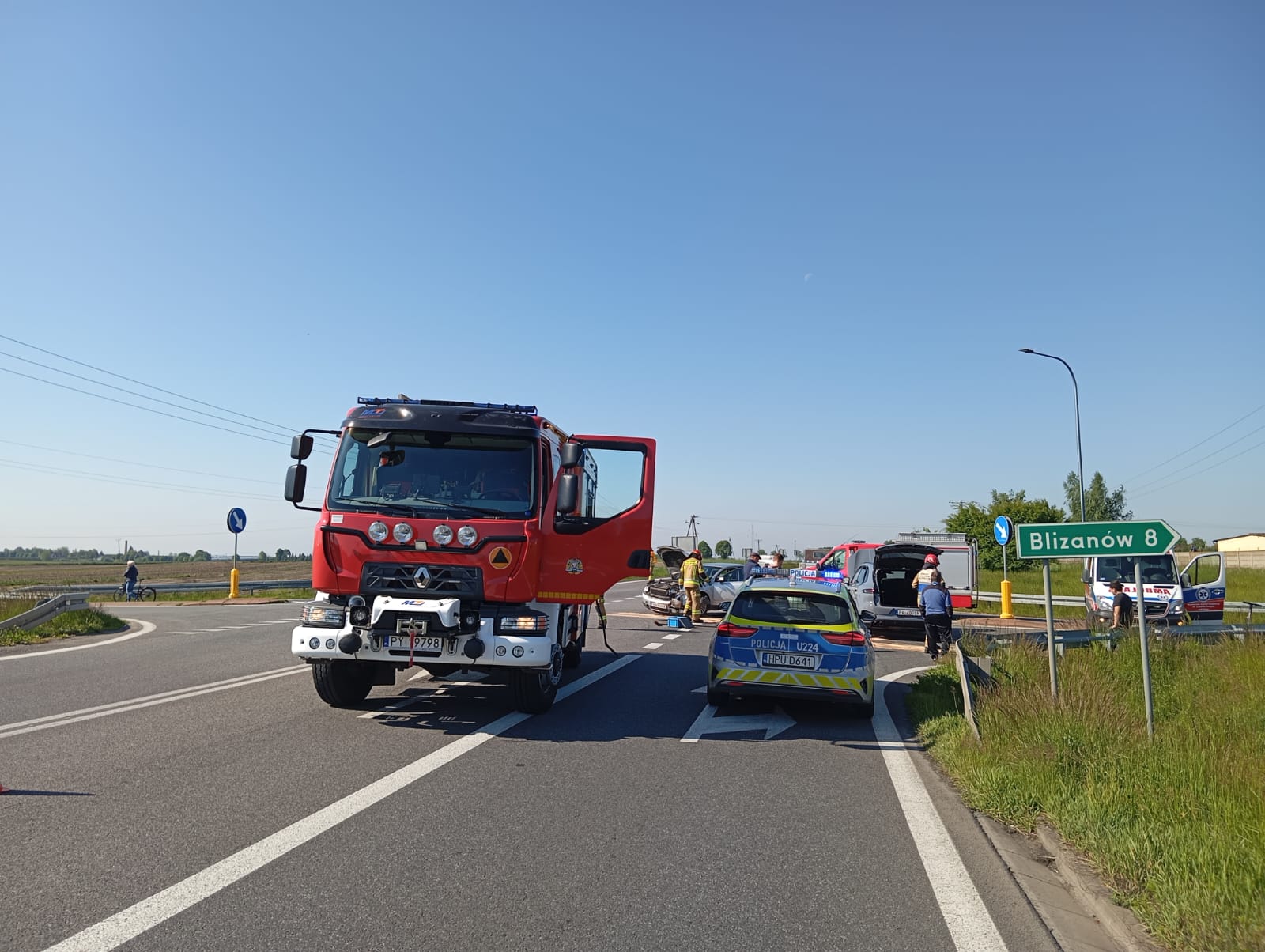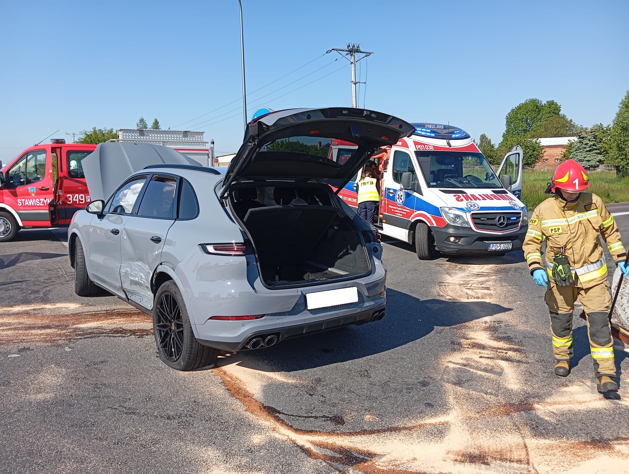 20 maja o godzinie 08:52 do Stanowiska Kierowania Komendanta Miejskiego Państwowej Straży Pożarnej w Kaliszu, wpłynęło zgłoszenie z automatycznego systemu alarmowego E-Call, dotyczące zderzenia pojazdów w miejscowości Wyrów w gminie Stawiszyn. Po przybyciu na miejsce zdarzenia zastępów Straży Pożarnej stwierdzono, że na skrzyżowaniu dróg DK 25 oraz drogi gminnej doszło do przednio - bocznego zderzenia pojazdów osobowych. Kierujący pojazdami oraz jedno dziecko opuściły pojazdy przed przybyciem zastępów na miejsce, pas jezdni w kierunku Kalisza został zablokowany. Działania przybyłych na miejsce zastępów polegały na zabezpieczeniu miejsca zdarzenia, udzieleniu Kwalifikowanej Pierwszej Pomocy podróżującemu jednym z pojazdów dziecku, następnie przekazaniu przybyłemu Zespołowi Ratownictwa Medycznego. Kierujący pojazdami nie wymagali udzielenia pomocy w zakresie KPP. Dalsze działania polegały na zabezpieczaniu miejsce zdarzenia oraz naprzemiennym utrzymaniem ruchu drogowego na czas prowadzonych czynności Policji. Po zakończonych czynnościach przez Policję pojazdy usunięto z jezdni, które następnie zostały odholowane przez Pomoc Drogową oraz uprzątnięto pozostałości po kolizyjne z jezdni. W działaniach trwających niespełna trzy godziny udział wzięły zastępy z Jednostki Ratowniczo-Gaśniczej nr 1 w Kaliszu oraz Ochotniczej Straży Pożarnej w Stawiszynie.