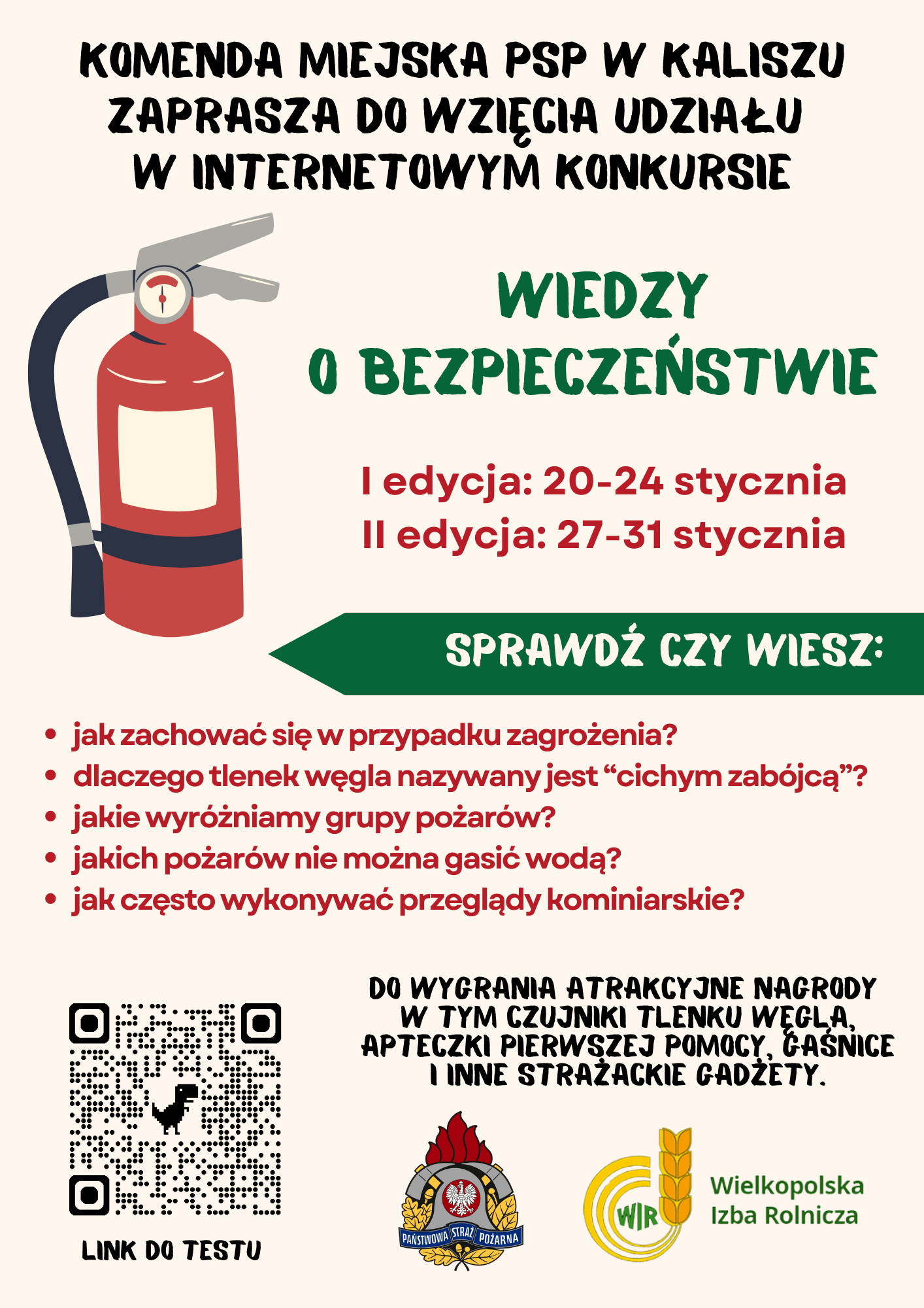 Konkurs wiedzy dla dorosłych: https://www.gov.pl/web/kmpsp-kalisz/konkurs-wiedzy