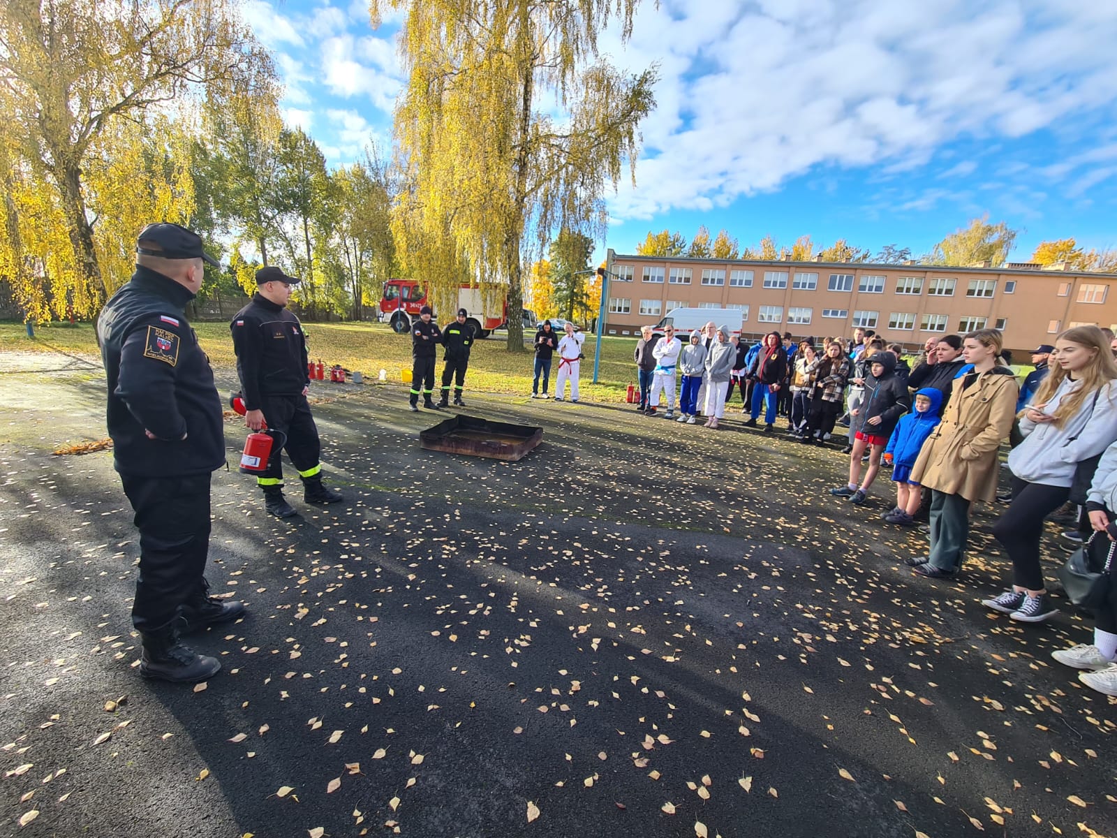Część teoretyczna została uzupełniona o pokaz praktyczny, podczas którego uczestnicy mogli samodzielnie spróbować ugasić kontrolowany ogień pod okiem strażaków. W praktyce przećwiczono m.in. ocenę sytuacji, bezpieczne podejście do źródła ognia oraz właściwą postawę podczas używania gaśnicy.