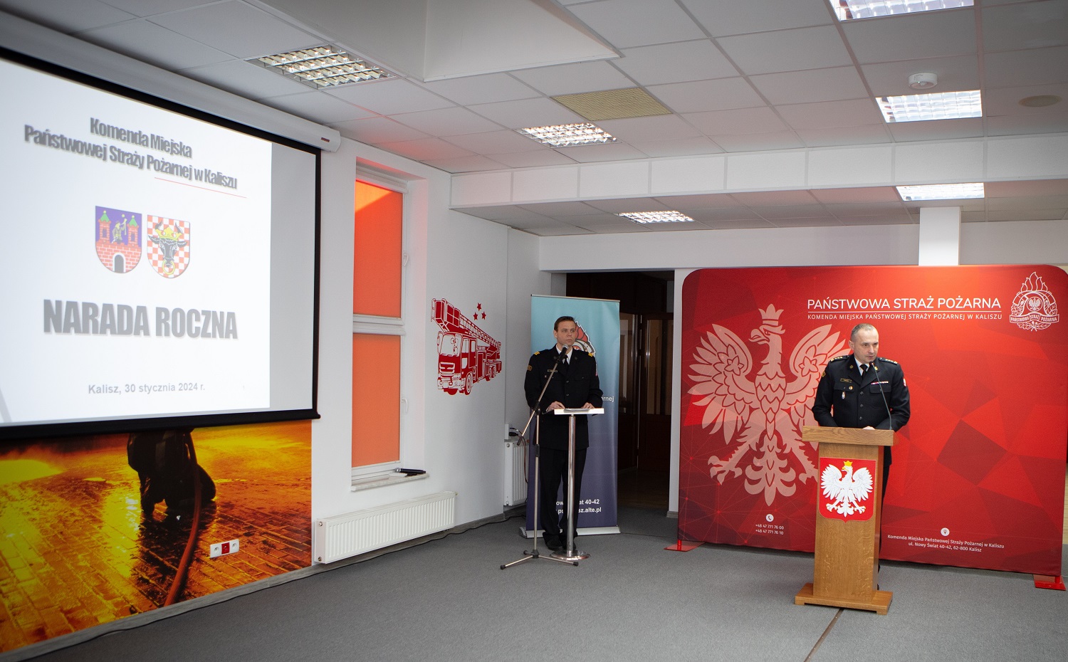 W dniu 30 stycznia 2024 roku w siedzibie Komendy Miejskiej Państwowej Straży Pożarnej w Kaliszu odbyła się narada roczna podsumowująca działalność komendy za 2023 rok.