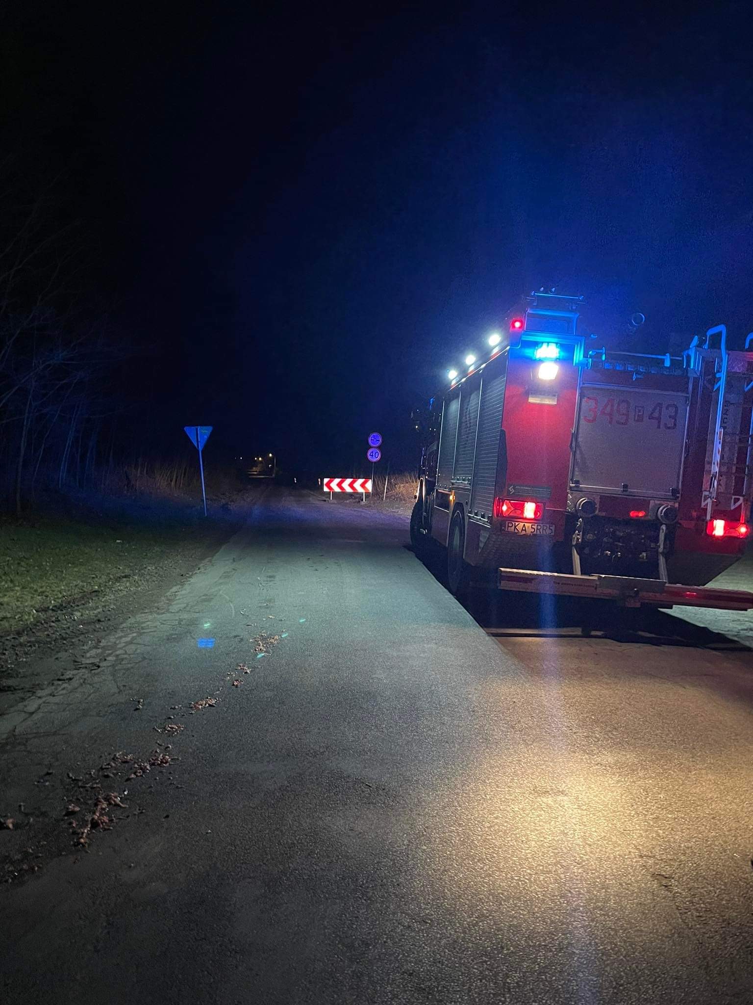 W dniu 14.02.2023r.około godz.17.40 2 zastępy PSP z Kalisza oraz 2 zastępy OSP z Gminy Brzeziny zostały zadysponowane do usunięcia odpadów poubojowych drobiu, które znajdowały się na drodze między Sobiesękami a Piegoniskiem Wieś na długości około 2,5 km. Podczas działań zebrano około 30 kg odpadów. Podczas prowadzenia działań ruch odbywał się wahadłowo.