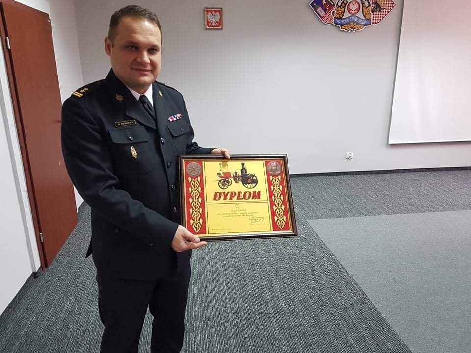 „Za wzorową postawę i wysokie osiągnięcia w realizacji zadań służbowych” Dyplom Komendanta Głównego Państwowej Straży Pożarnej otrzymał Komendant Miejski Państwowej Straży Pożarnej w Kaliszu bryg. Sławomir Kotoński.