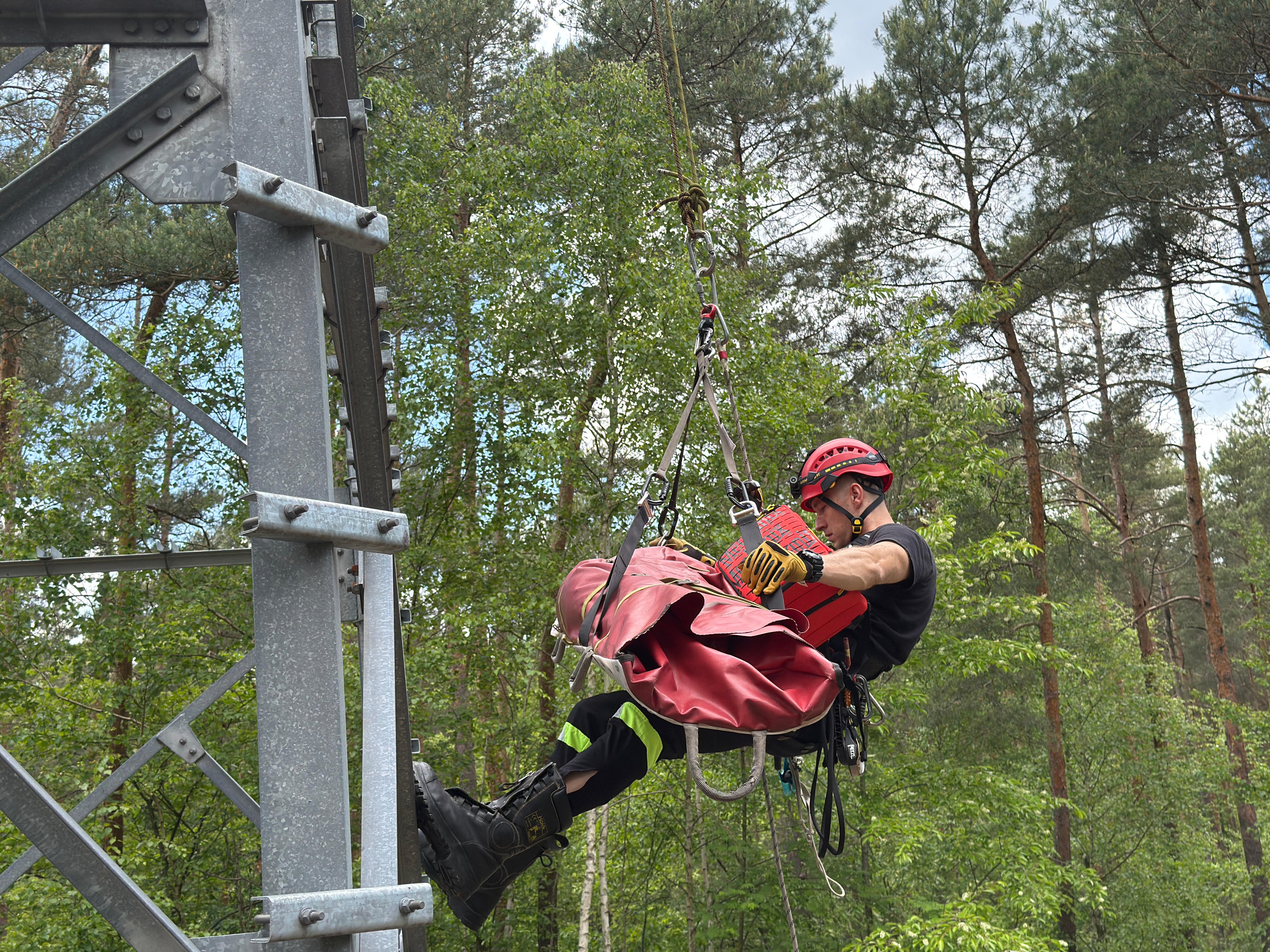 W trakcie służb zmianowych w miesiącu maju kontynuowano także systematyczne doskonalenie zawodowe z zakresu ratownictwa wysokościowego. Ćwiczenia obejmowały m.in. budowę stanowisk, techniki opuszczania i podnoszenia, ewakuację oraz obsługę sprzętu wysokościowego. Działania te pozwalają utrzymywać wysoki poziom gotowości operacyjnej JRG.