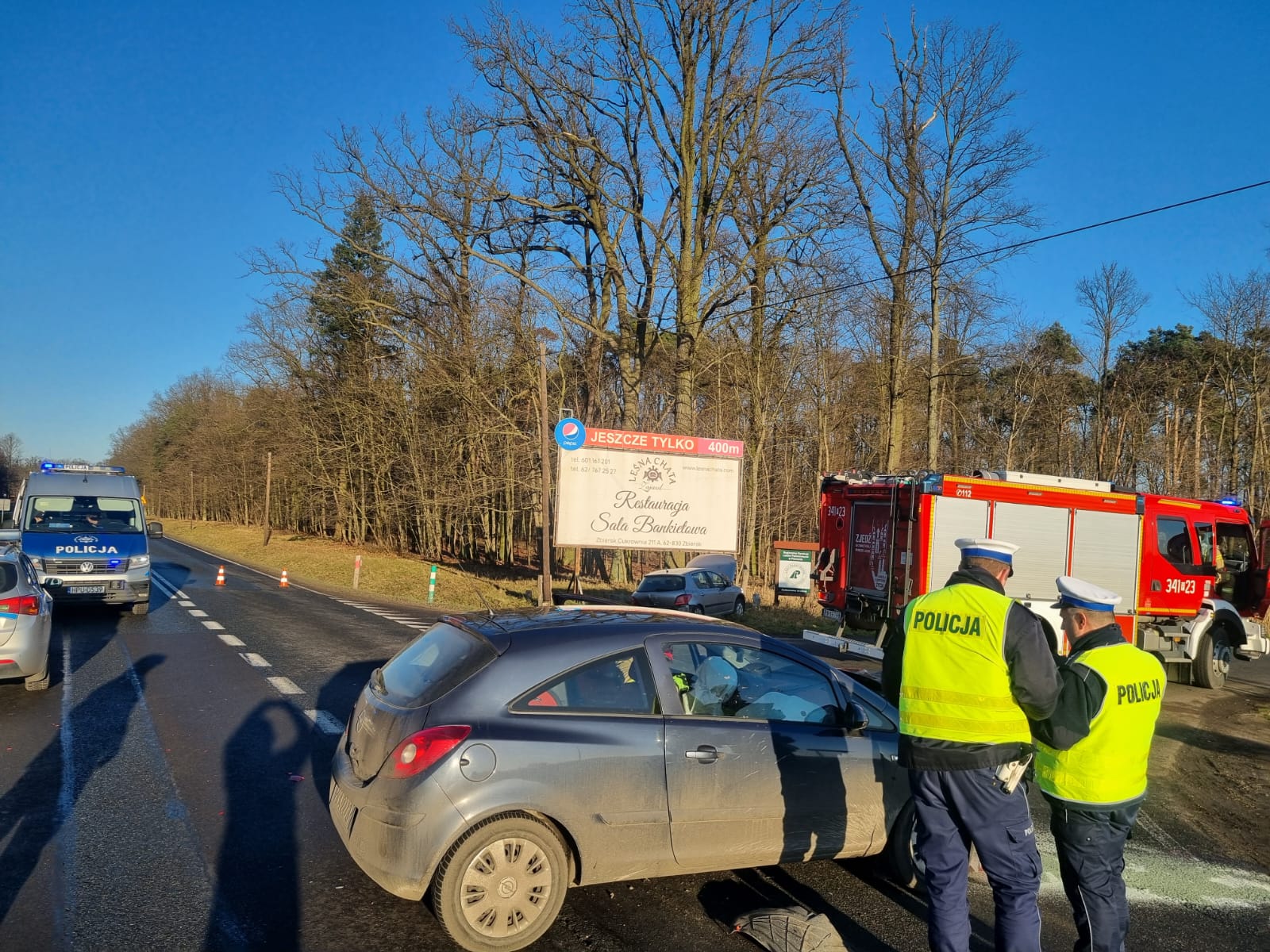 19 grudnia 2025 r. podczas powrotu do macierzystych jednostek z zdarzenia w miejscowości Zbiersk-Cukrowania na DK 25 zastęp Państwowej Straży Pożarnej oraz OSP Stawiszyn i OSP Zbiersk najechały na zderzenia dwóch samochodów osobowych zaledwie kilkaset metrów od poprzedniego zdarzenia. W wypadku brały udział łącznie 3 osoby w tym funkcjonariusz Policji który kierował ruchem na skrzyżowaniu dróg w celu objazdu zdarzenia które miało miejsce od wczesnych godzin porannych, na skutek zderzenia pojazdów funkcjonariusz został potrącony przez jedno z aut. Działania Straży Pożarnej polegały na zabezpieczeniu miejsca zdarzenia, udzieleniu kwalifikowanej pierwszej pomocy oraz zabezpieczeniu pojazdów. Po przebadaniu osób biorących udział w zdarzeniu Zespół Ratownictwa Medycznego podjął decyzję o zabraniu funkcjonariusza Policji do szpitala celem dalszej hospitalizacji. Po zakończeniu czynności prowadzonych przez Policję pojazdy zostały usunięte z jezdni, a miejsce zdarzenia uprzątnięte.